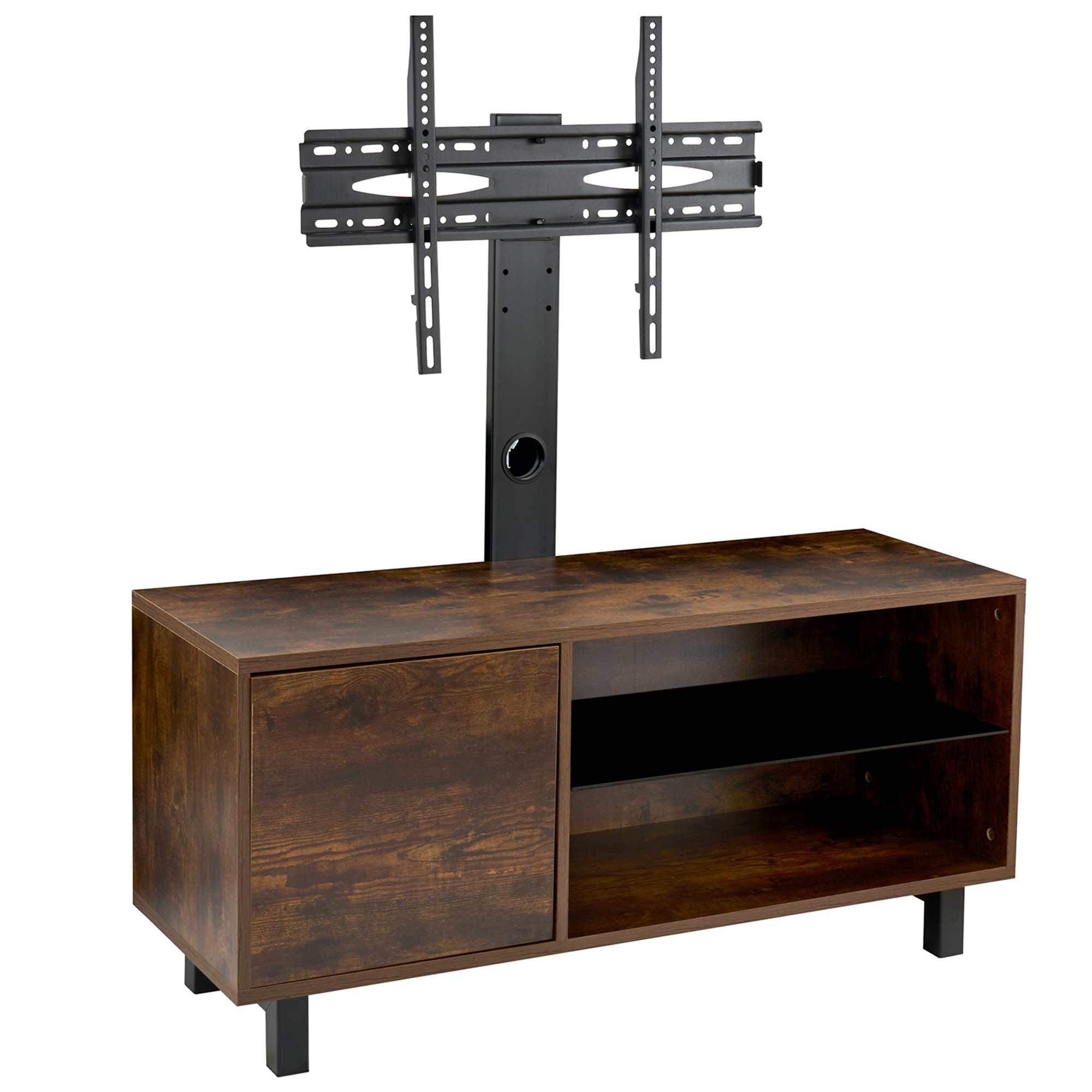 Rustic Brown TV Console With Push to open Storage Cabinet For TV Up To 65in Wood &glass TV...