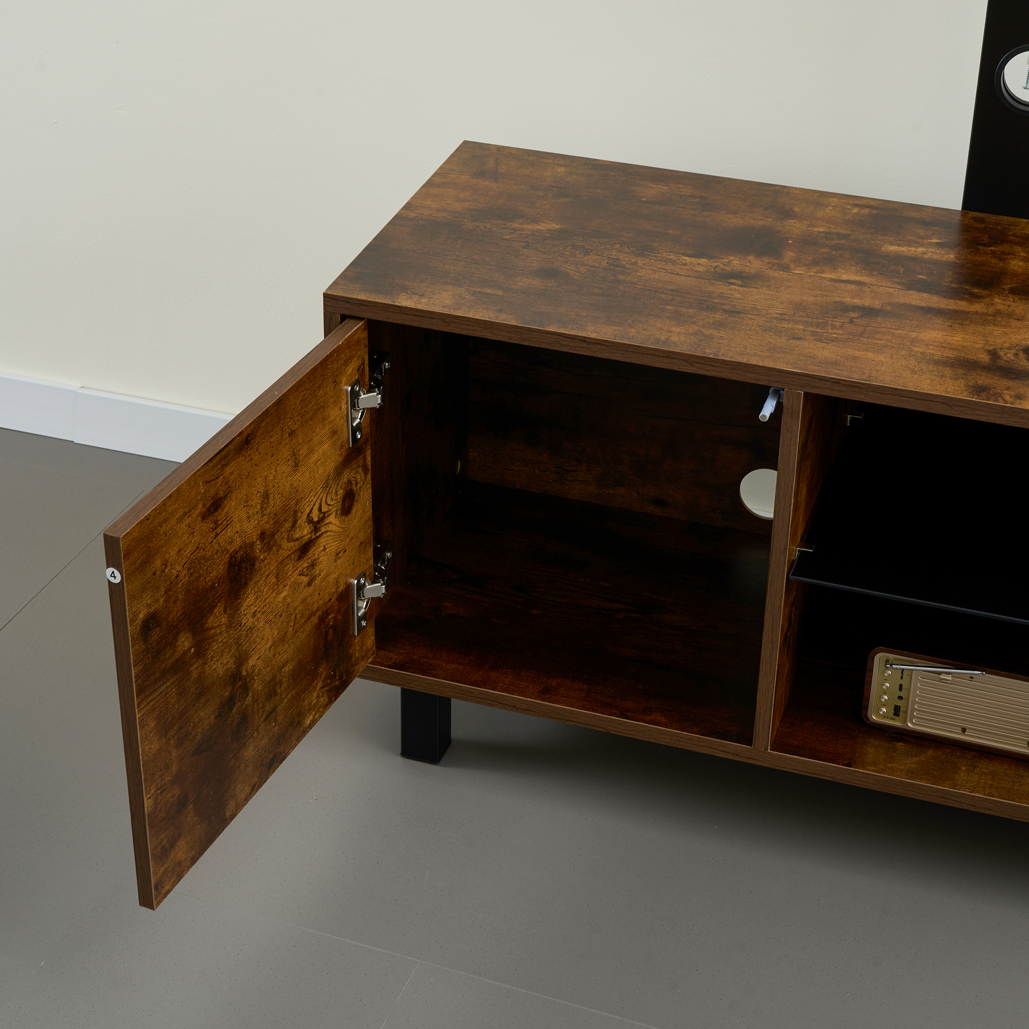 Product Name:Rustic Brown TV Console with push-to-open Storage Cabinet for TV up to 65in Wood &glass TV Stand for Living Room Bedroom