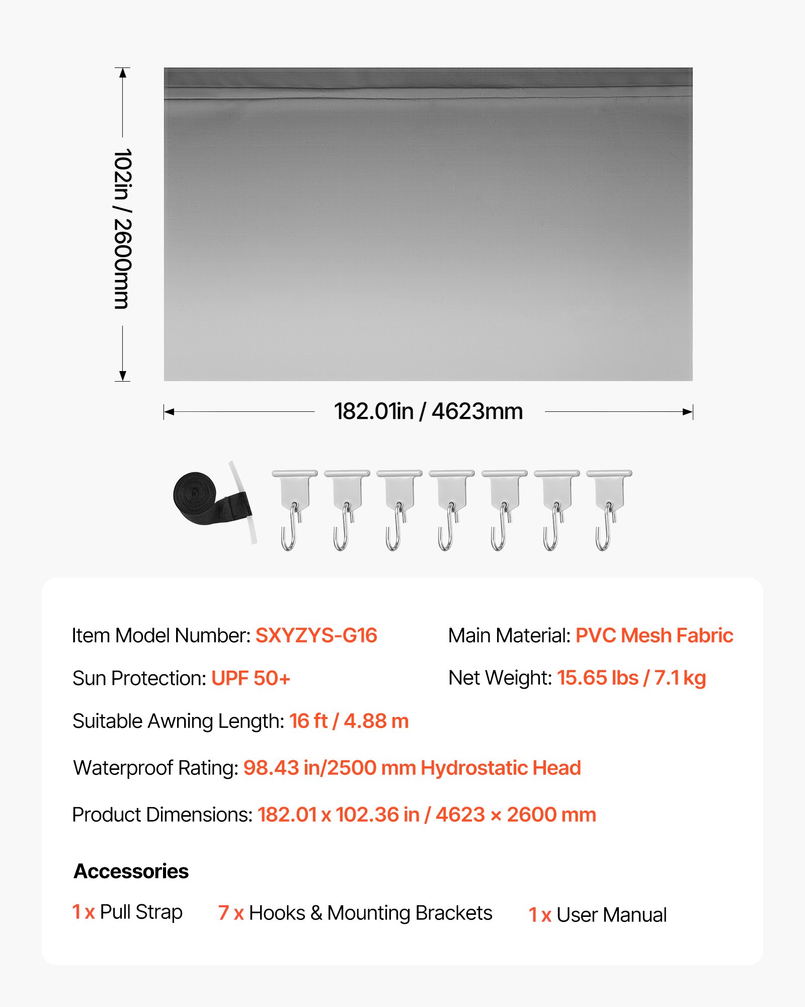 UPF 50+ & Waterproof: This RV awning fabric replacement blocks 98% of harmful sunlight and withstands up to 98.43 in (2500 mm) hydrostatic head. It keeps your RV dry and cool in rain or intense sun while resisting dampness