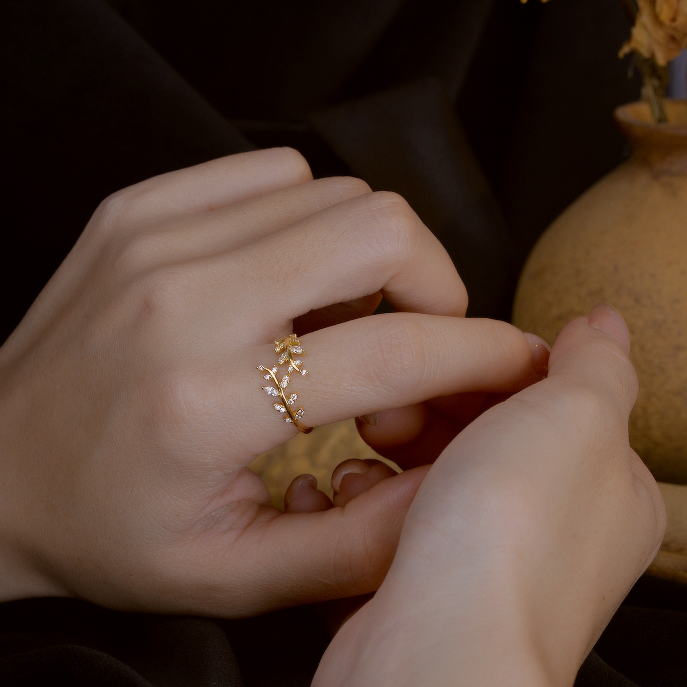S925 Sterling Silver Leaf & Wheat Ring For Women, Minimalist High End Open Ring, Sweet...