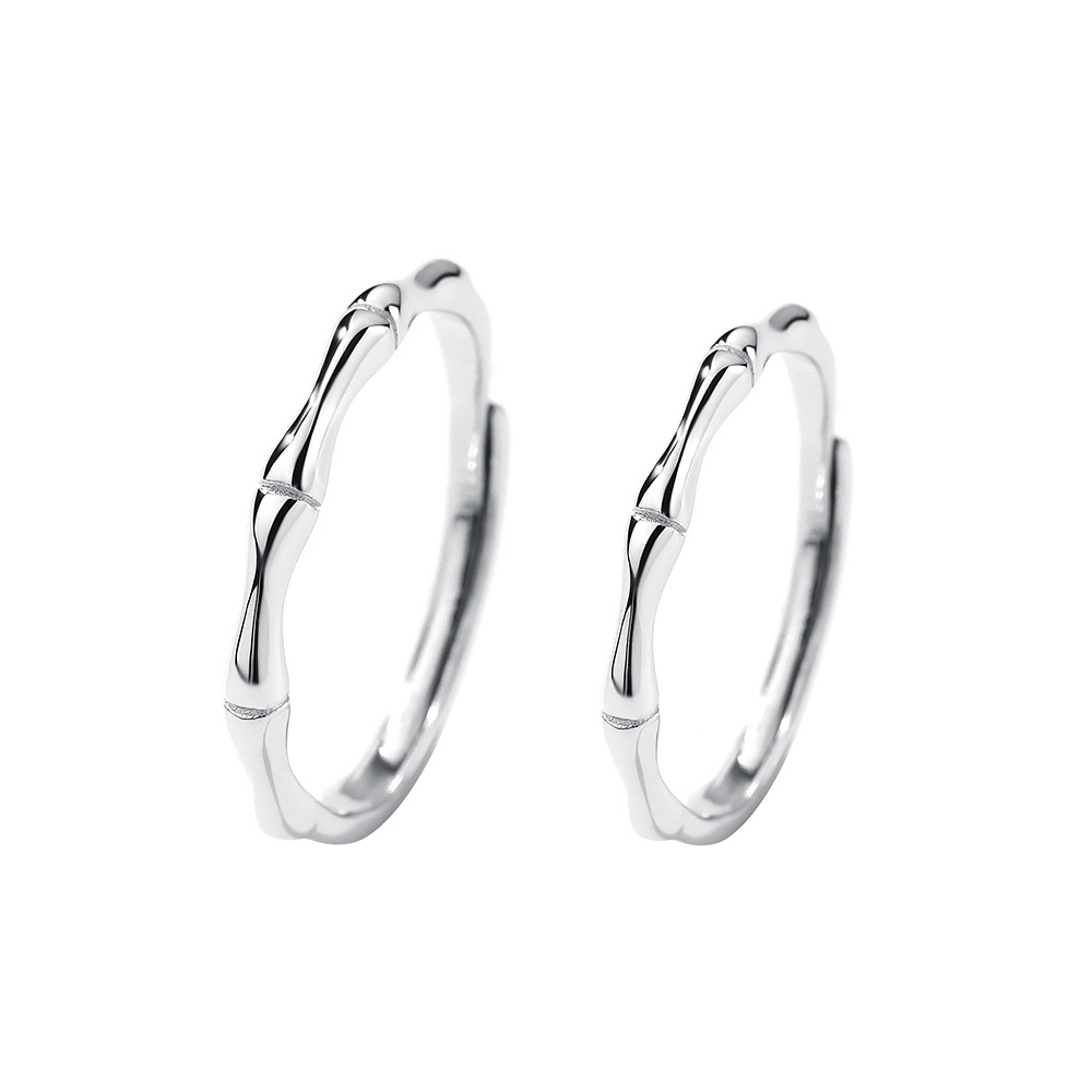 S999 Sterling Silver Bamboo Couple Rings 2 Piece Set, Minimalist Niche Adjustable Pair...