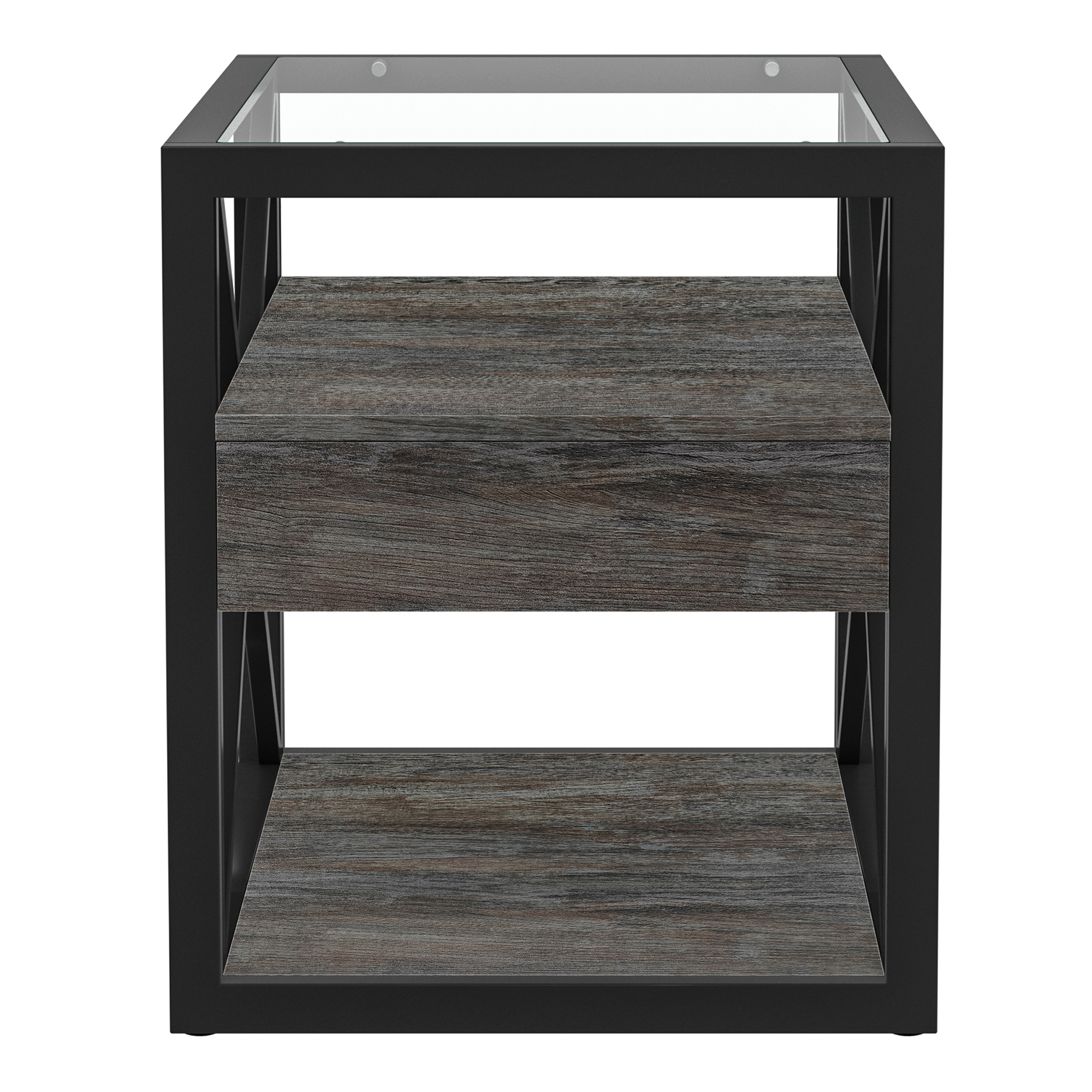 Specification Product Information Product Type :Single Box Product Product Name:Set of 2 Modern End Table with Drawer - Nightstand for Bedroom & Living Room, Rustic Wood Grain MDF & Tempered Glass Top, Industr...