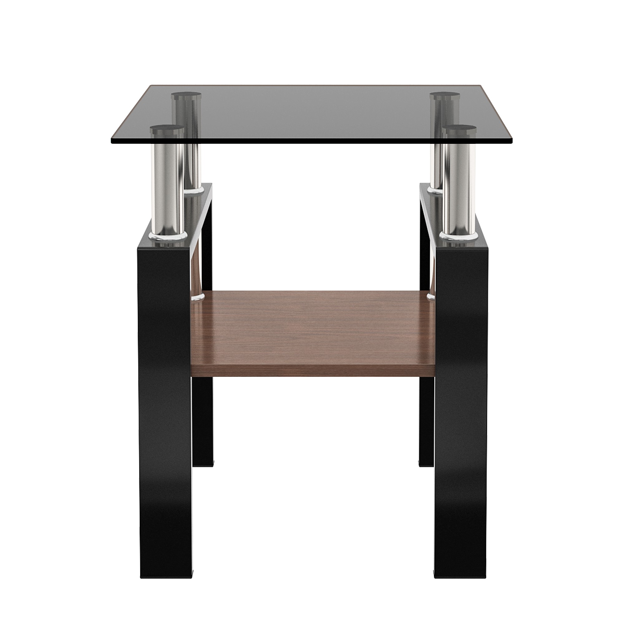 Product Name:Set of 2 Modern Tempered Glass Tea Table ,Tempered Glass Tabletop with MDF Layer,Coffee Table,End Table, Square Table for Living Room, gray/black