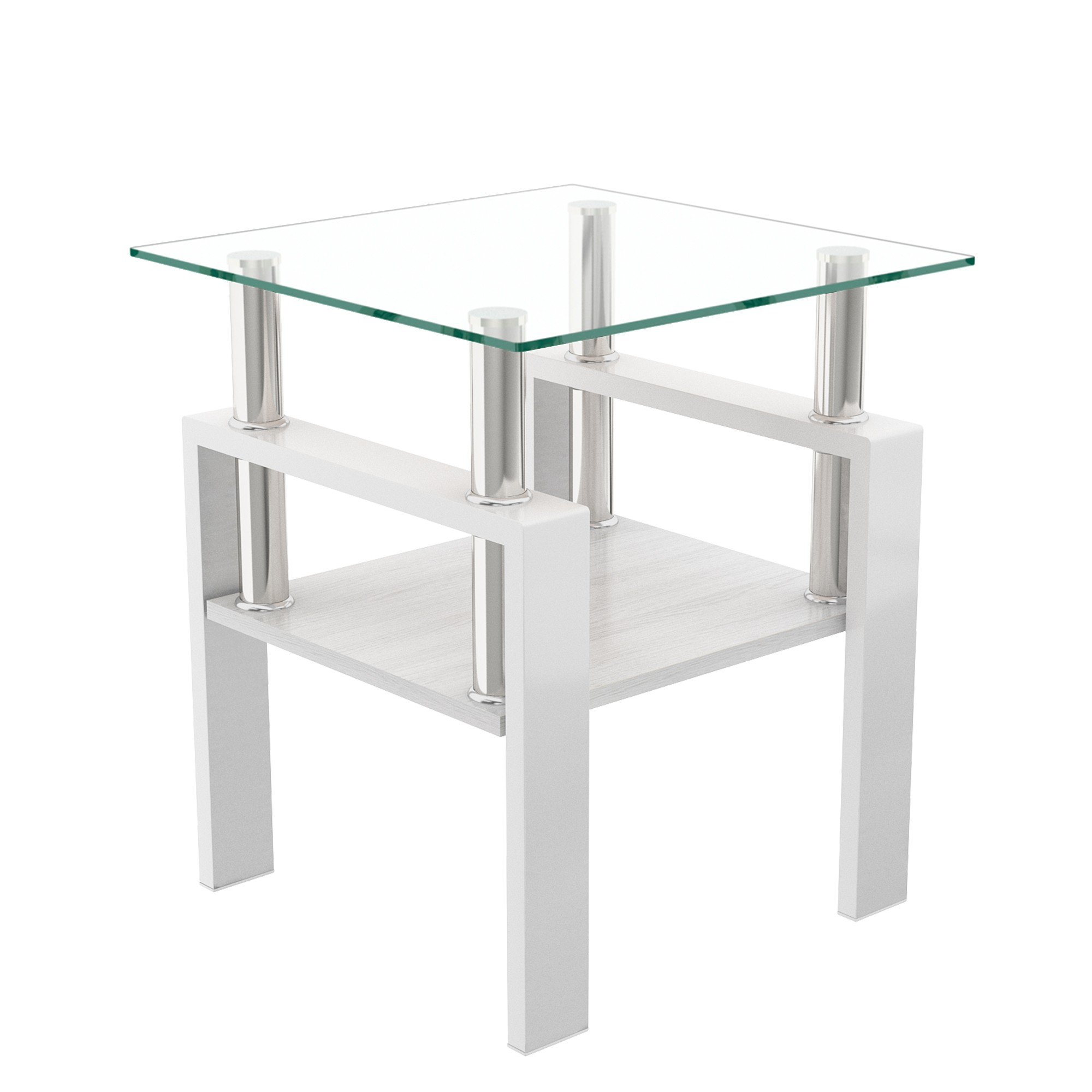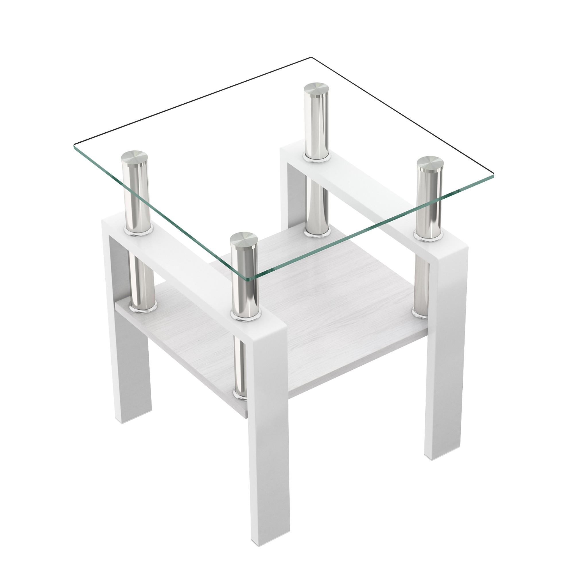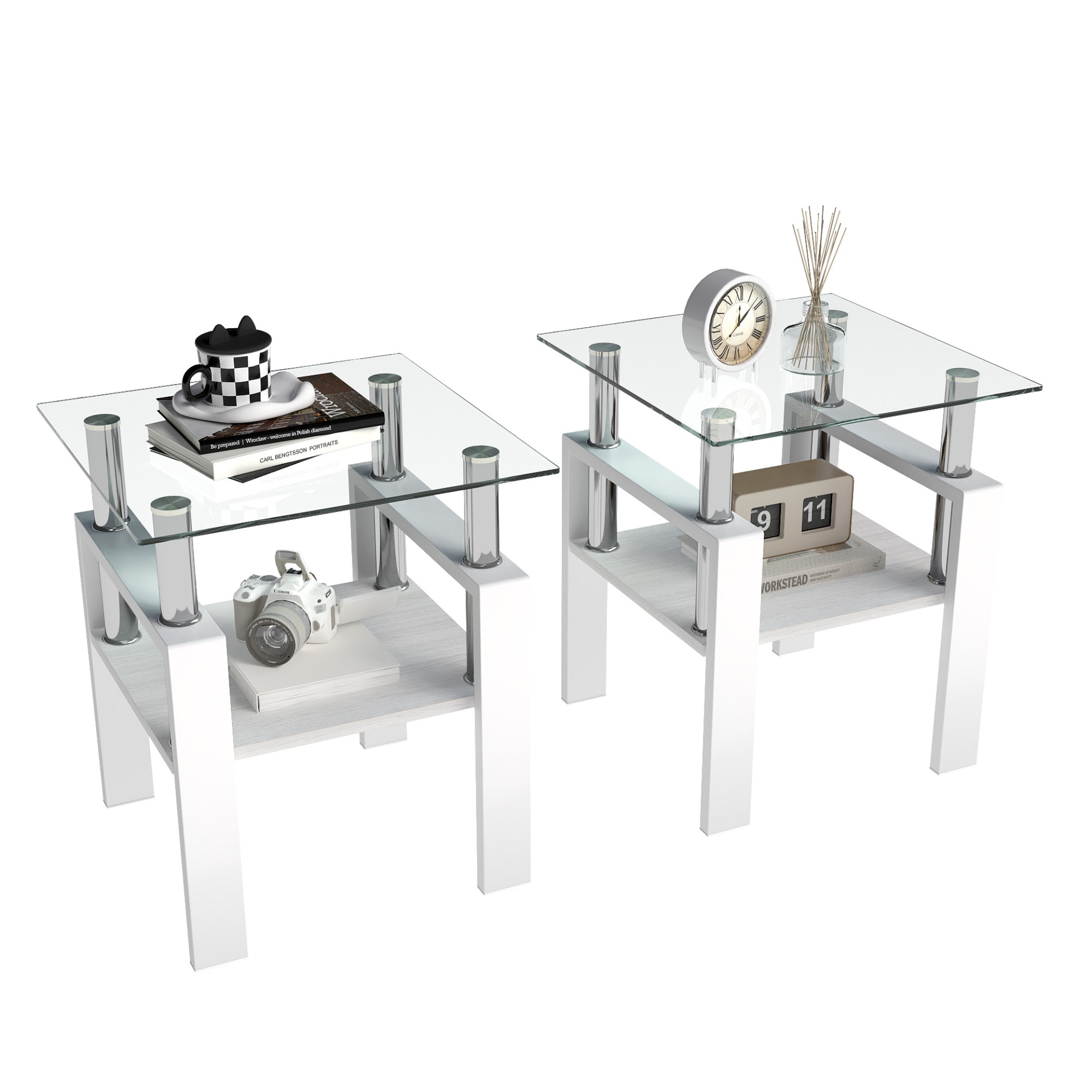 Product Name:Set of 2 Modern Tempered Glass Tea Table,Tempered Glass Tabletop with MDF Layer,Coffee Table,End Table, Square Table for Living Room, Transparent/white