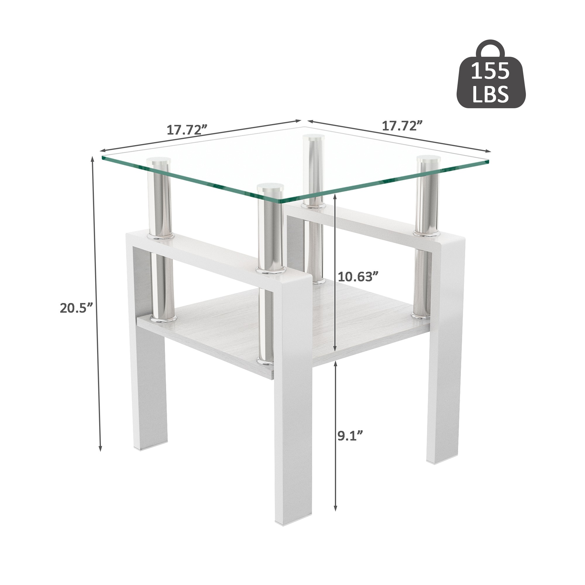 Specification Product Information Product Type :Single Box Product Product Name:Set of 2 Modern Tempered Glass Tea Table,Tempered Glass Tabletop with MDF Layer,Coffee Table,End Table, Square Table for Living Room, Tra...