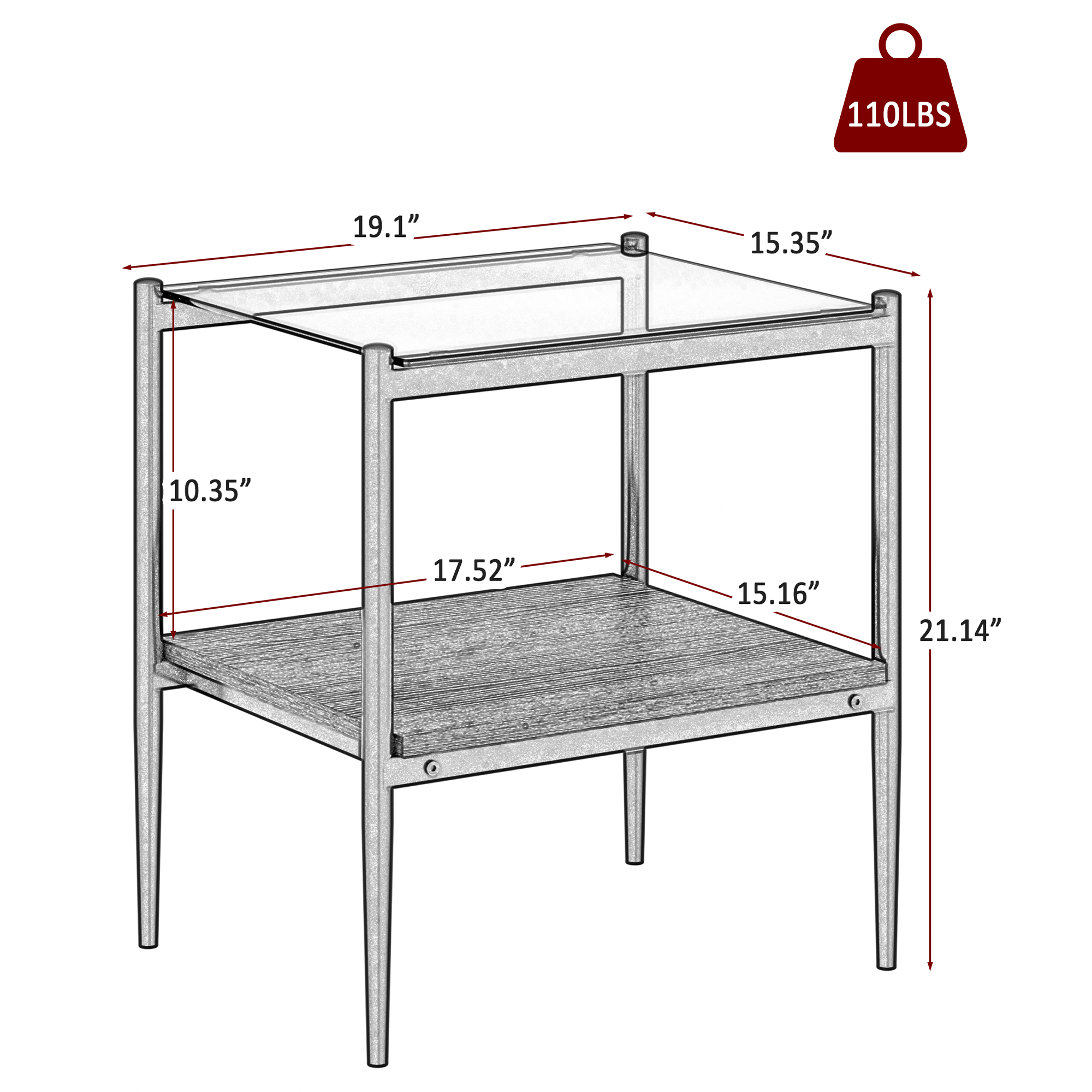 Product Name:Set of 2 Rectangle End Table, Tempered Glass Tabletop with MDF layer, Modern Table for Living Room , Gray Glass