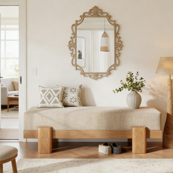 Specification Available Ship to:United States Details Plush Comfort - This upholstered entryway bench is stuffed with high-quality sponge and covered in soft fabric, delivering a plush seating experience that enc...