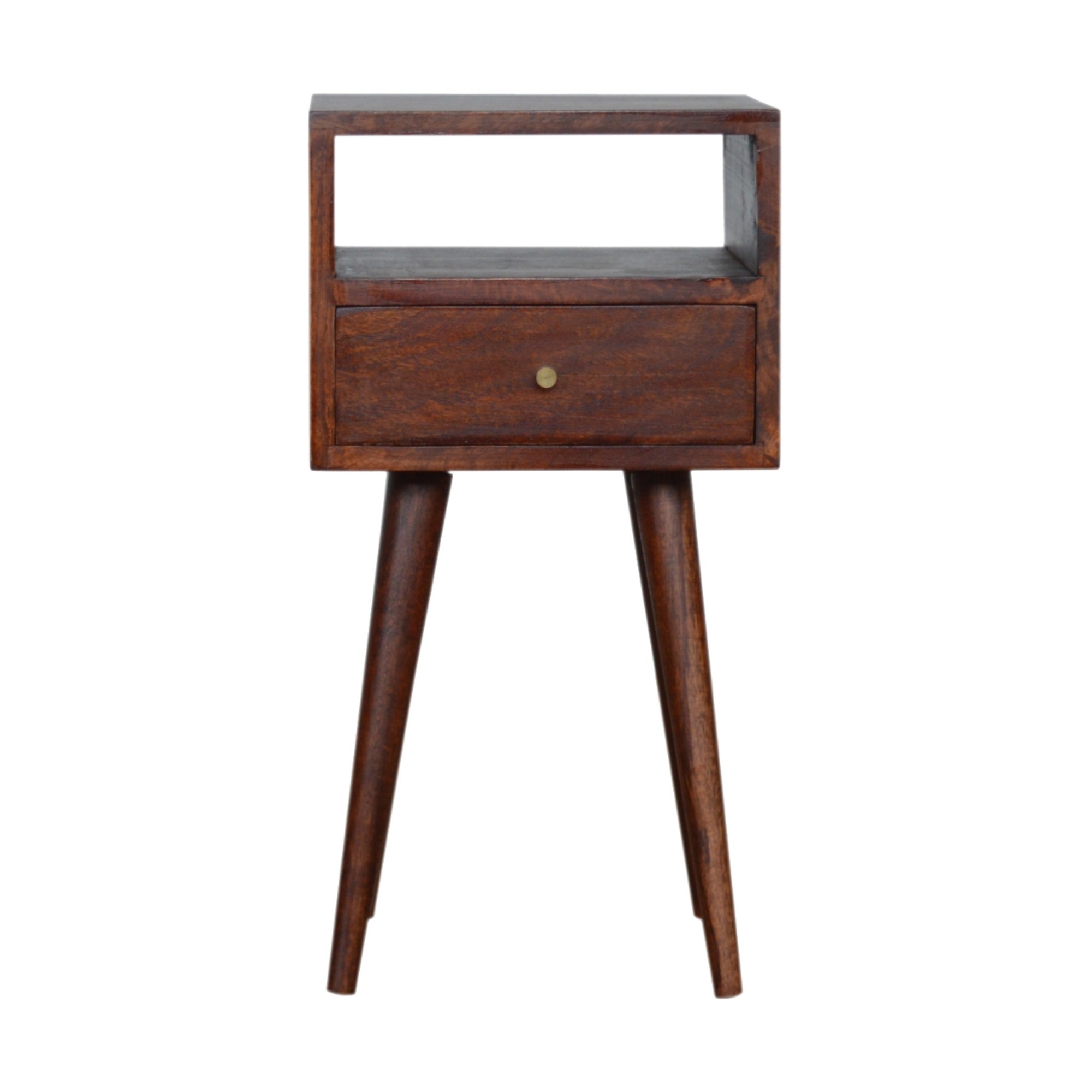 Solid Wood Mini Cherry Bedside, 1 Drawer And Open Shelf, Dark Brown