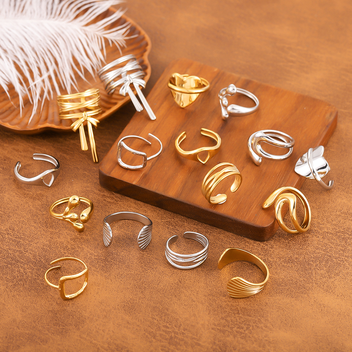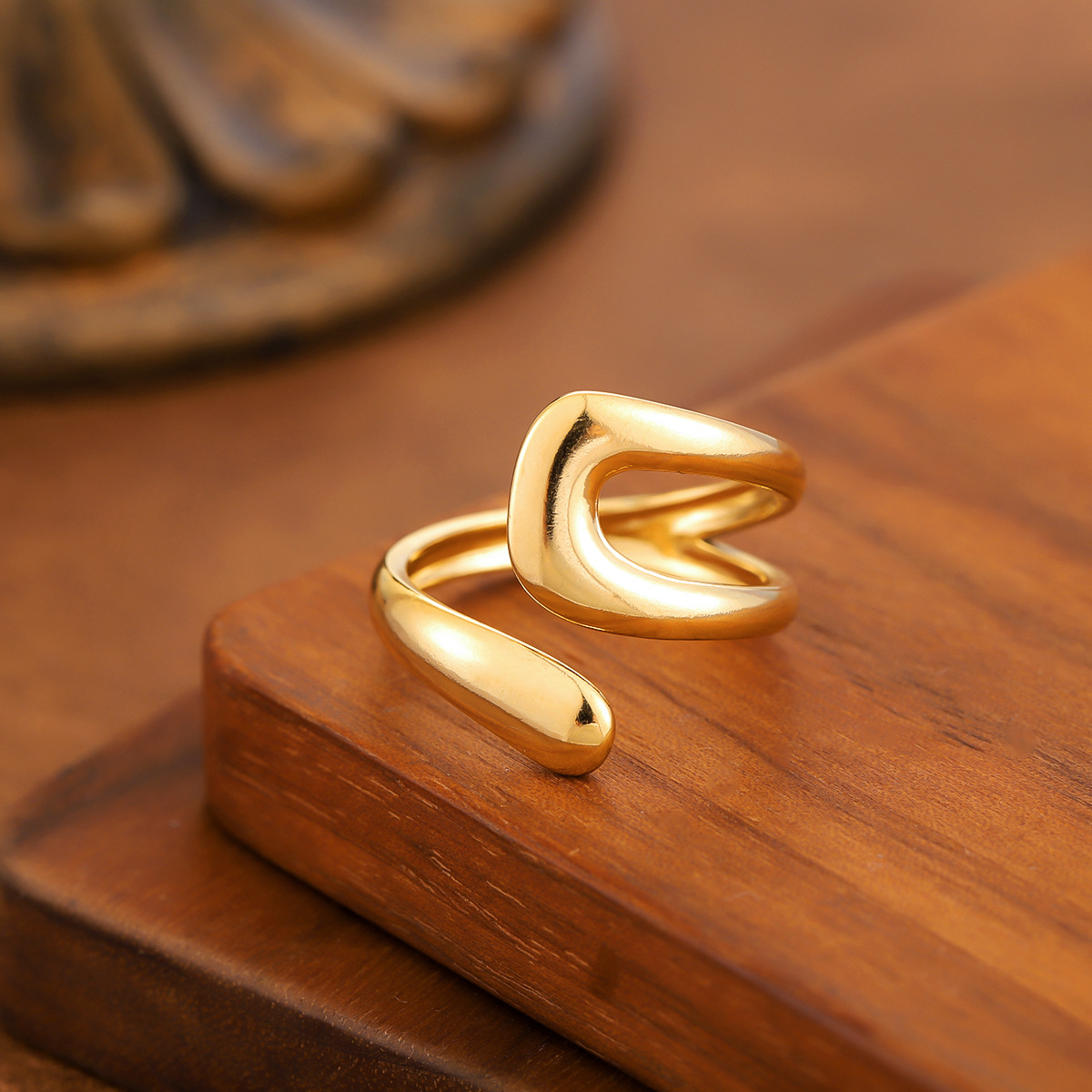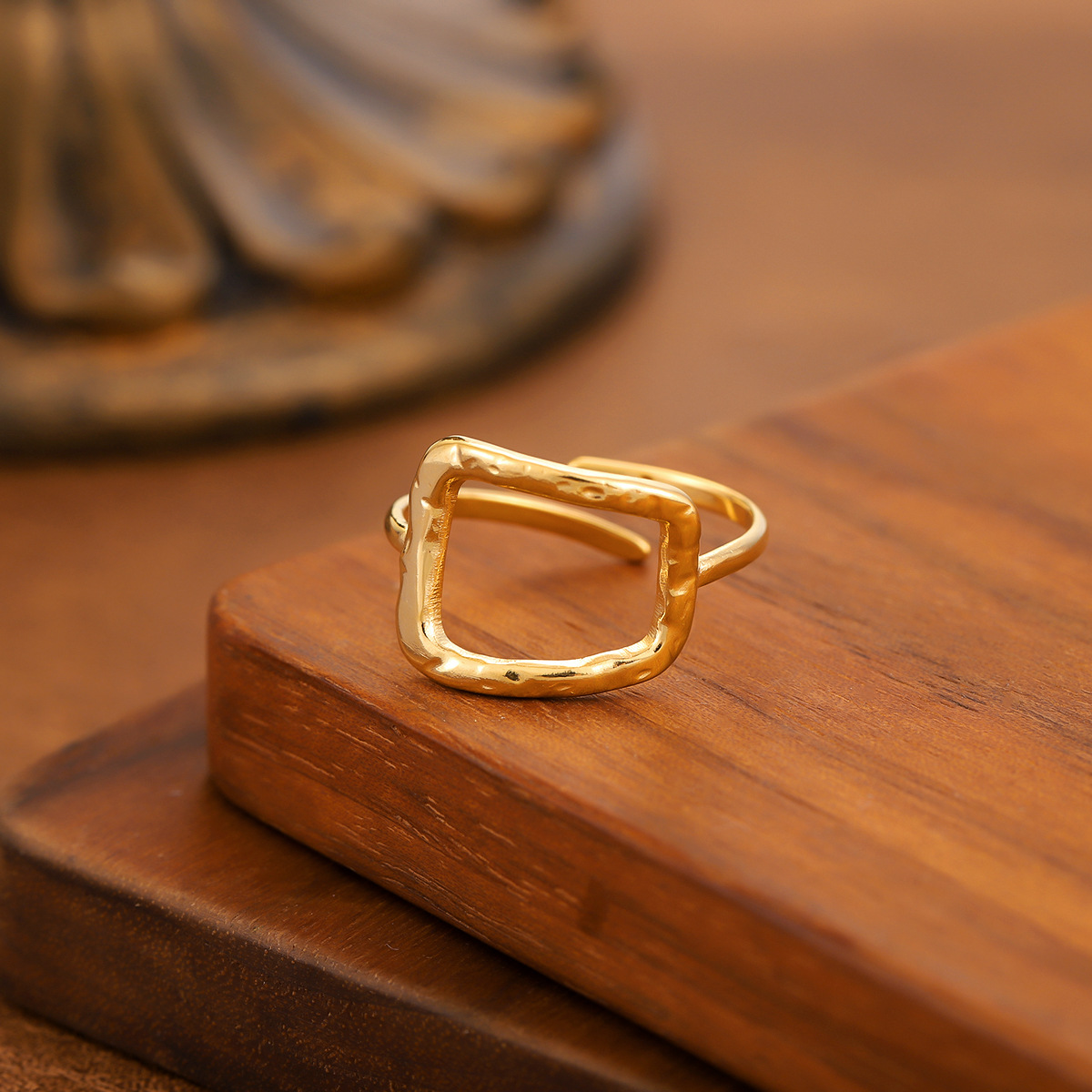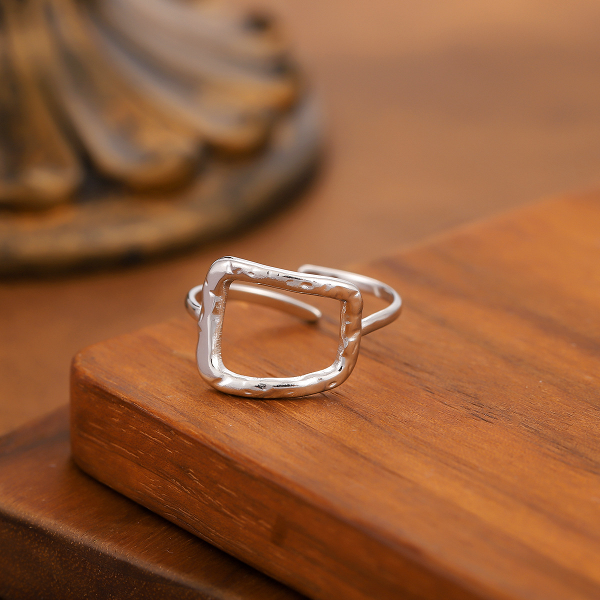 Stainless Steel Minimalist Hollow Geometric Ring For Women, Trendy Personality Adjustable...