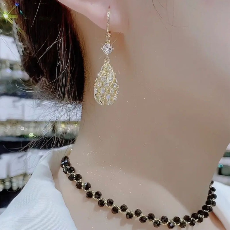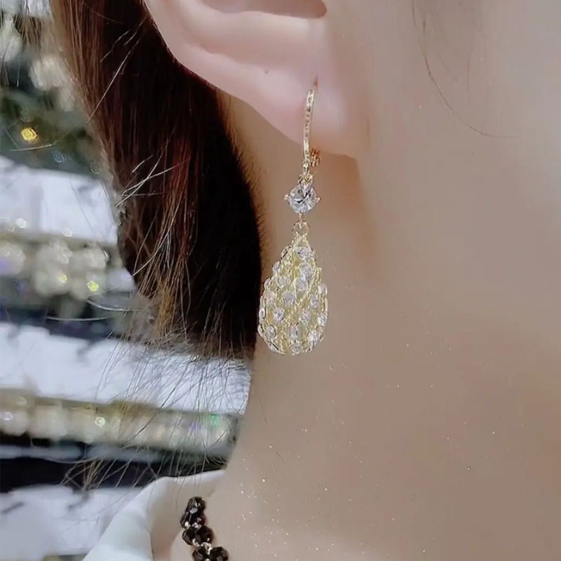 Super Flash Diamond encrusted Water Drop Earrings Niche