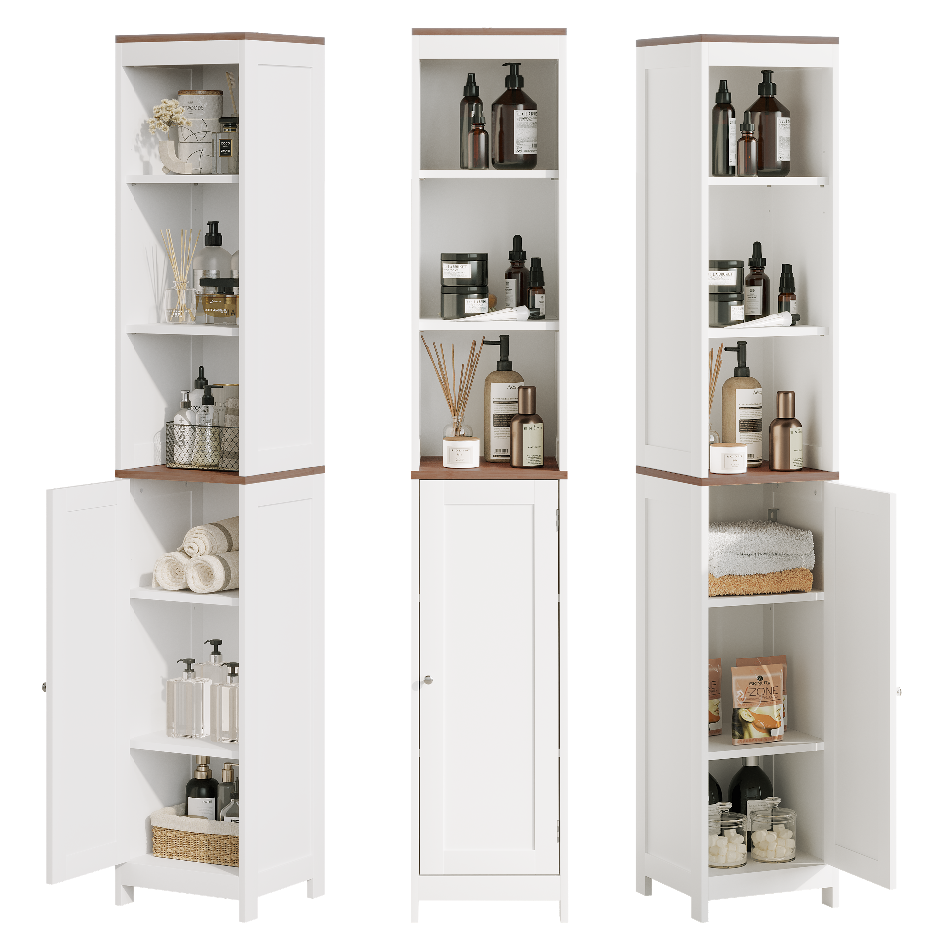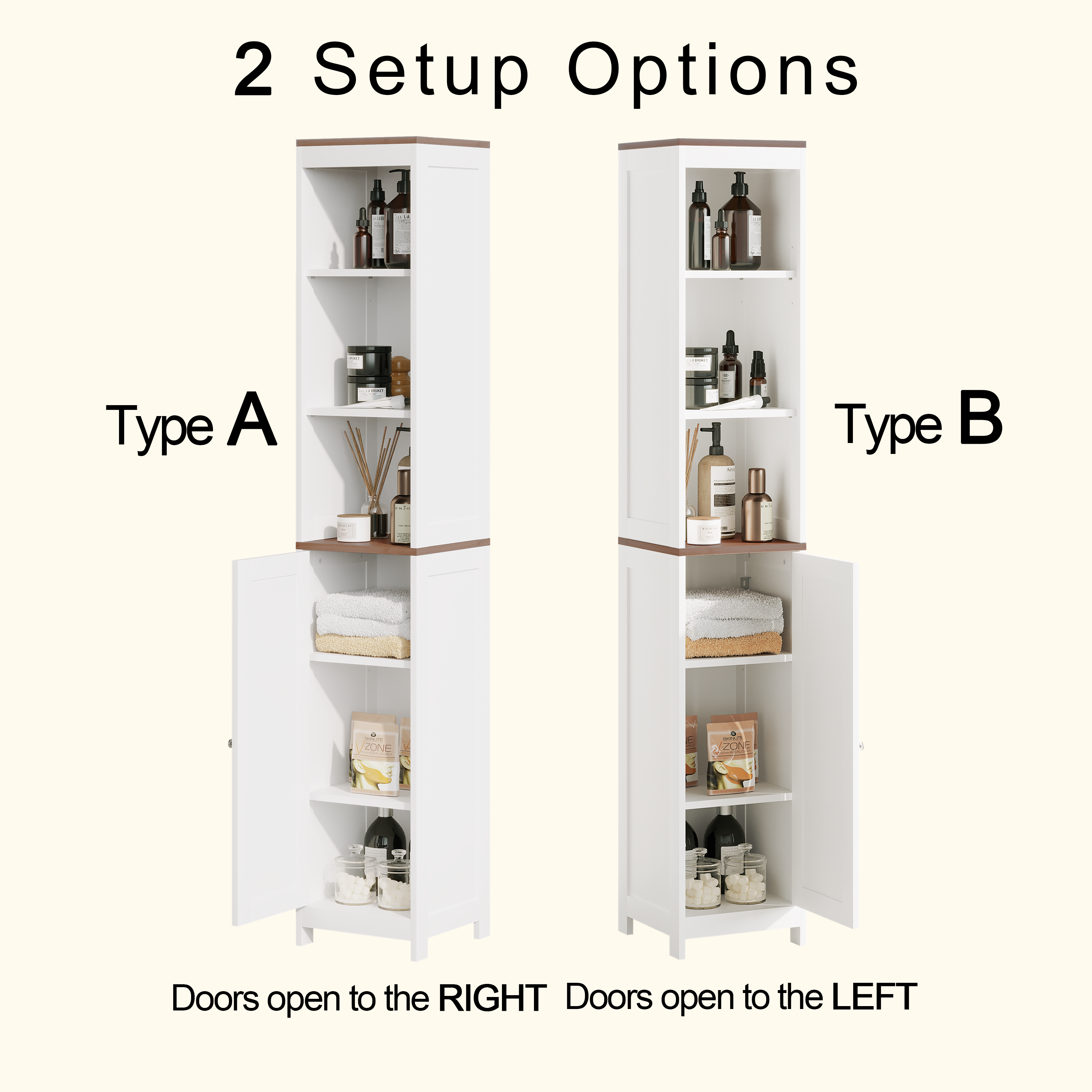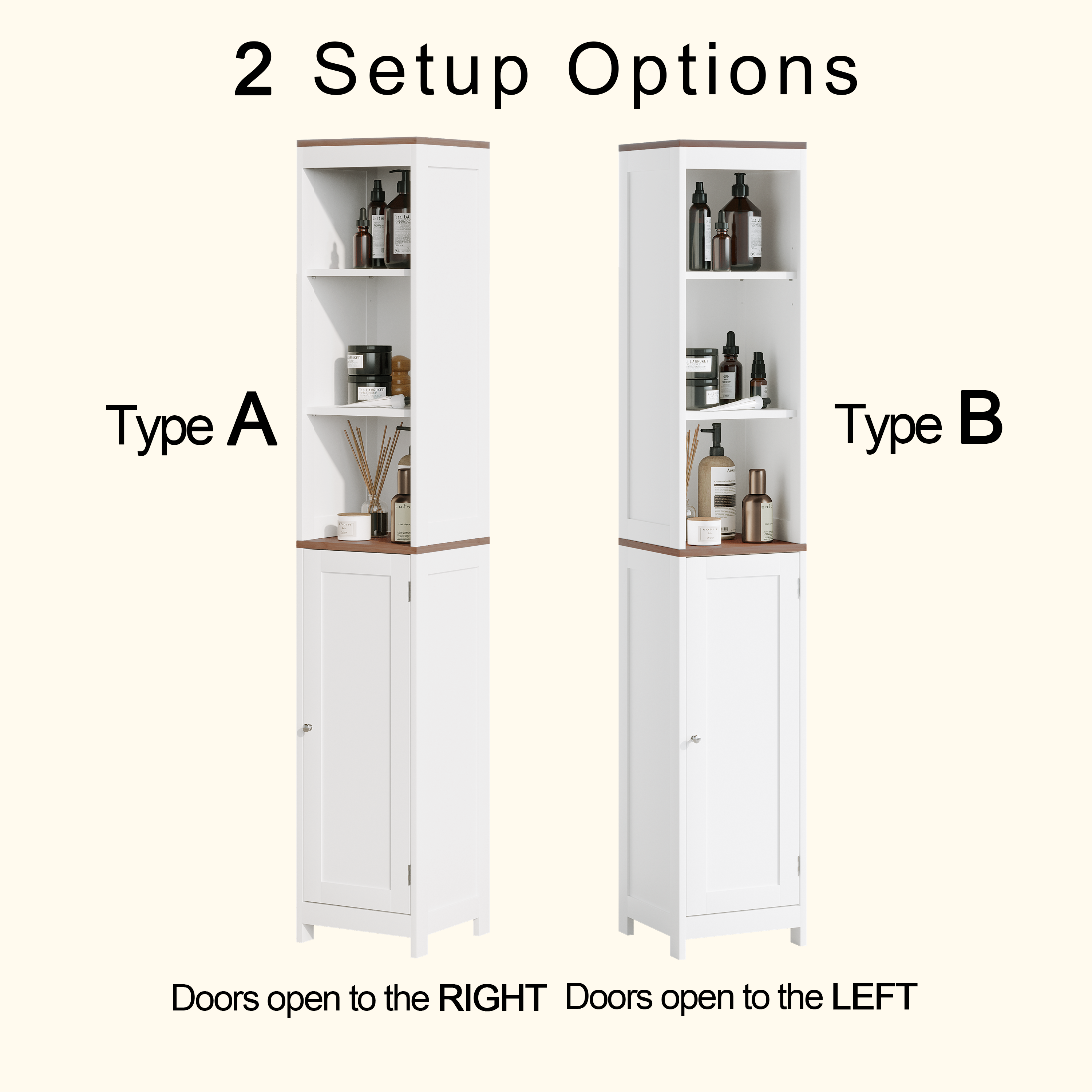 Product Name:Tall Bathroom Storage Cabinet with Reversible Door, Freestanding Linen Tower with Open Shelves and Enclosed Cabinet, Narrow Floor Cabinet Organizer for Bathroom, Laundry Room or Small Spaces – White