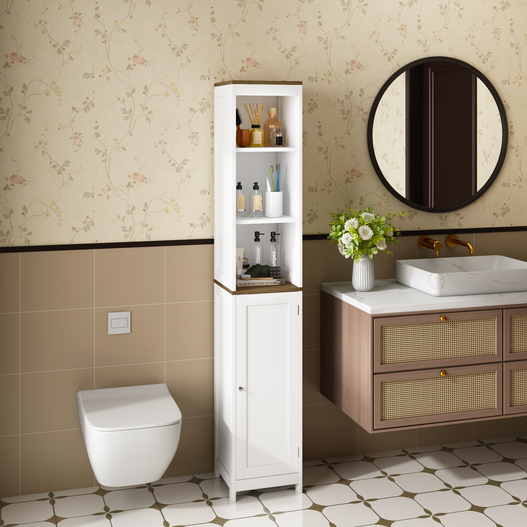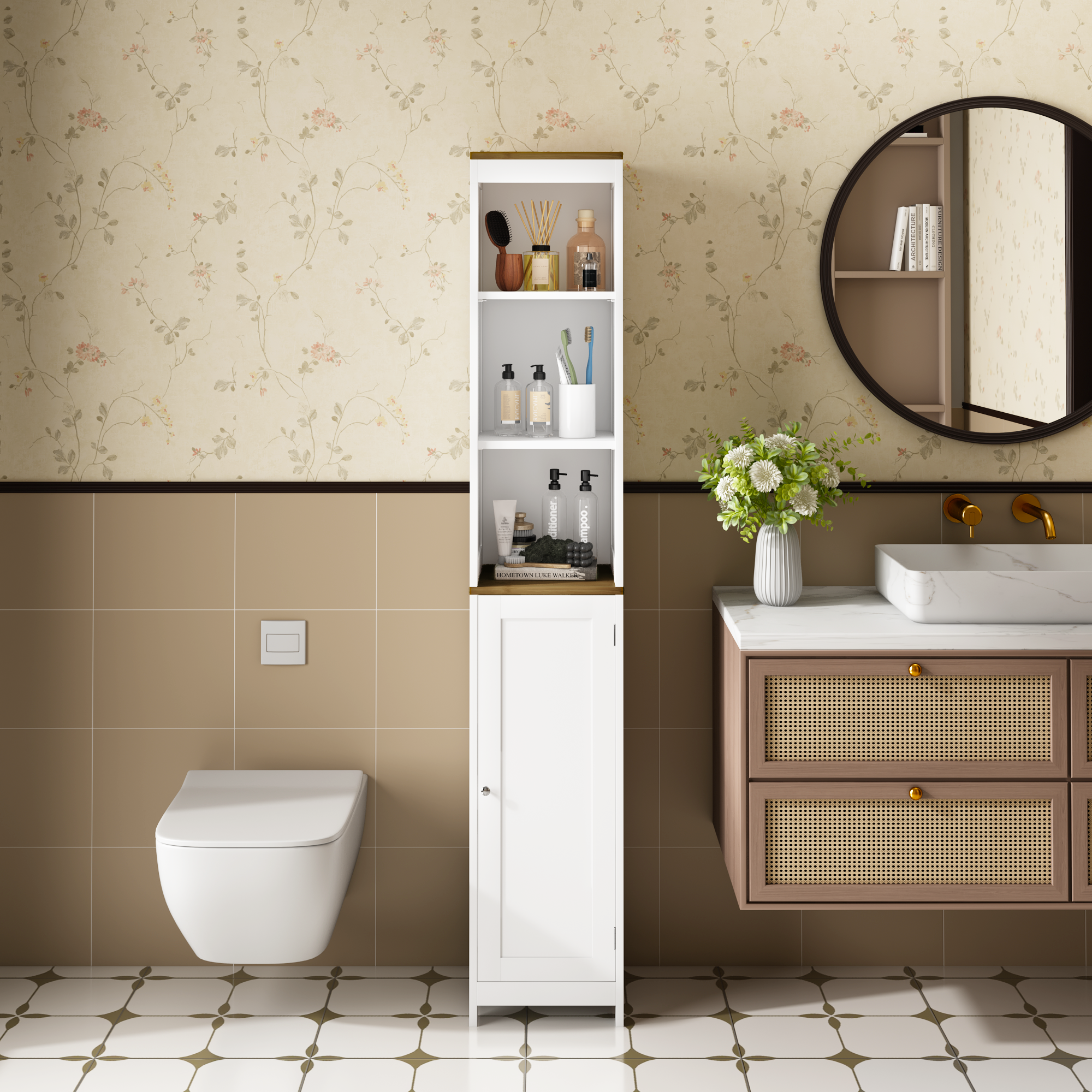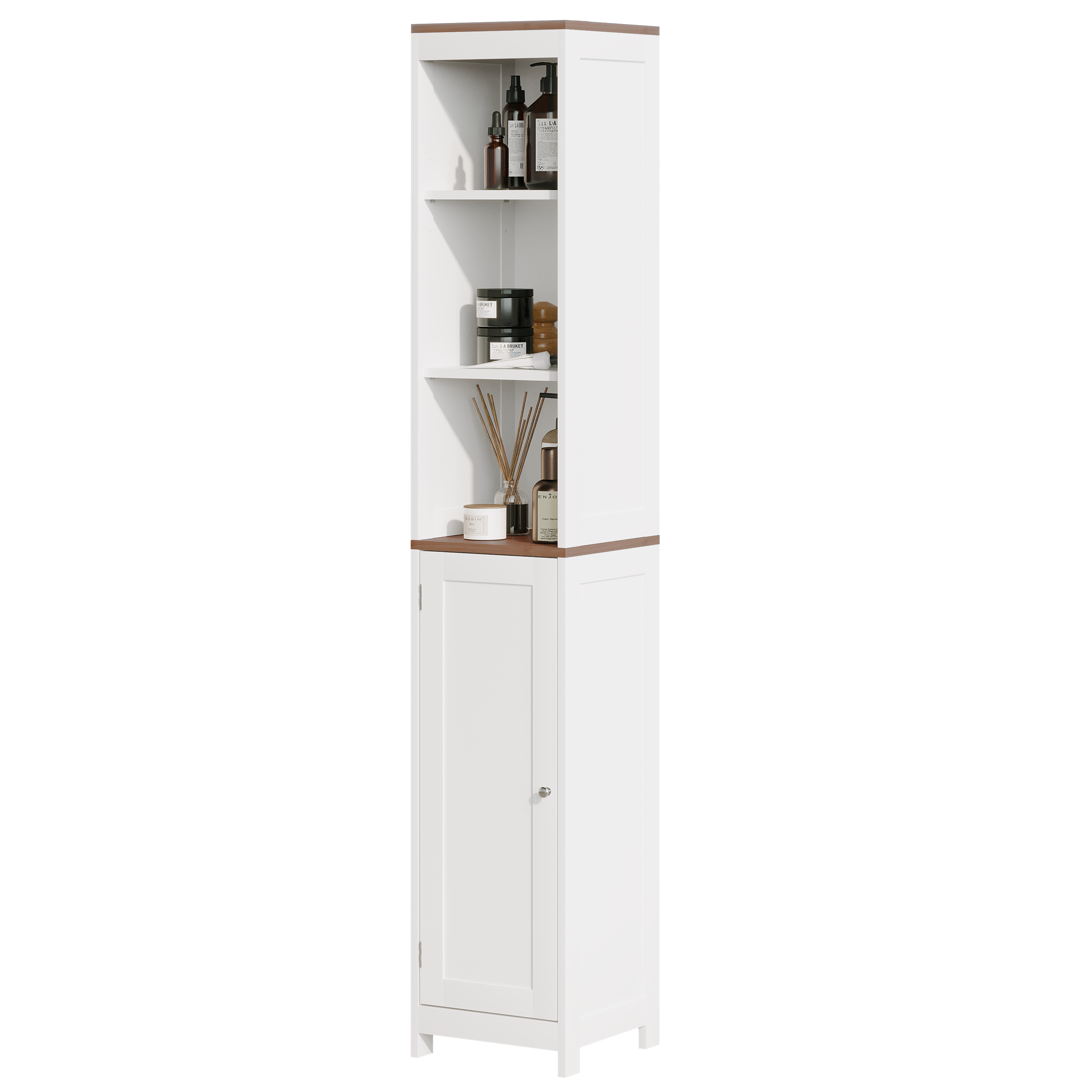 Product Name:Tall Bathroom Storage Cabinet with Reversible Door, Freestanding Linen Tower with Open Shelves and Enclosed Cabinet, Narrow Floor Cabinet Organizer for Bathroom, Laundry Room or Small Spaces – White