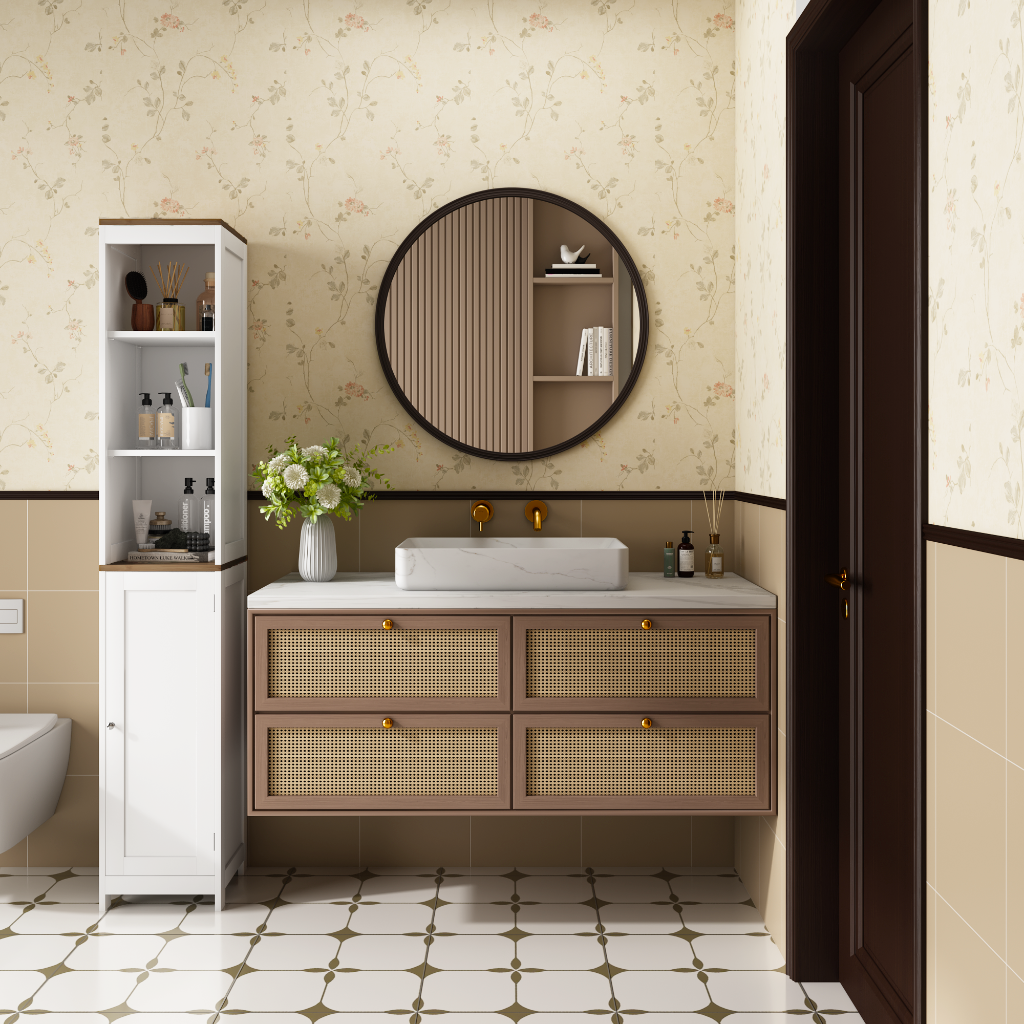 - The cabinet door can be installed to open from either the left or right side, allowing flexible placement to fit different room layouts and bathroom configurations.
