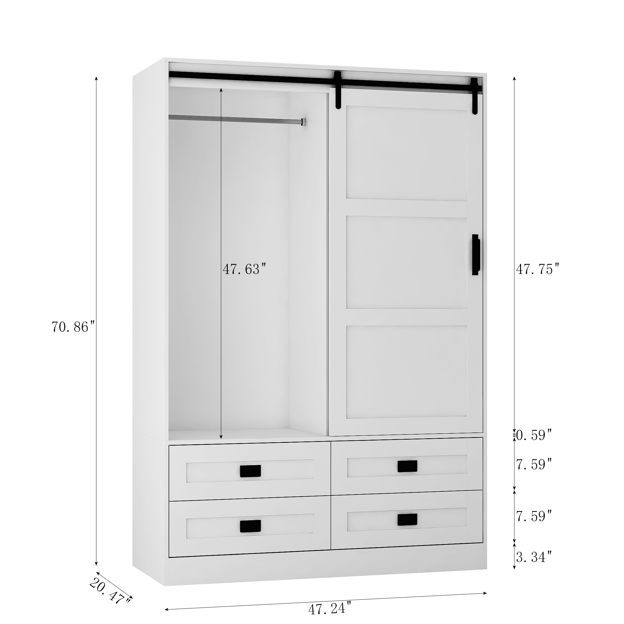 - With classic sliding barn door design, the 4 storage drawers 3 open shelves wood wardrobe armoire is beautiful and practical