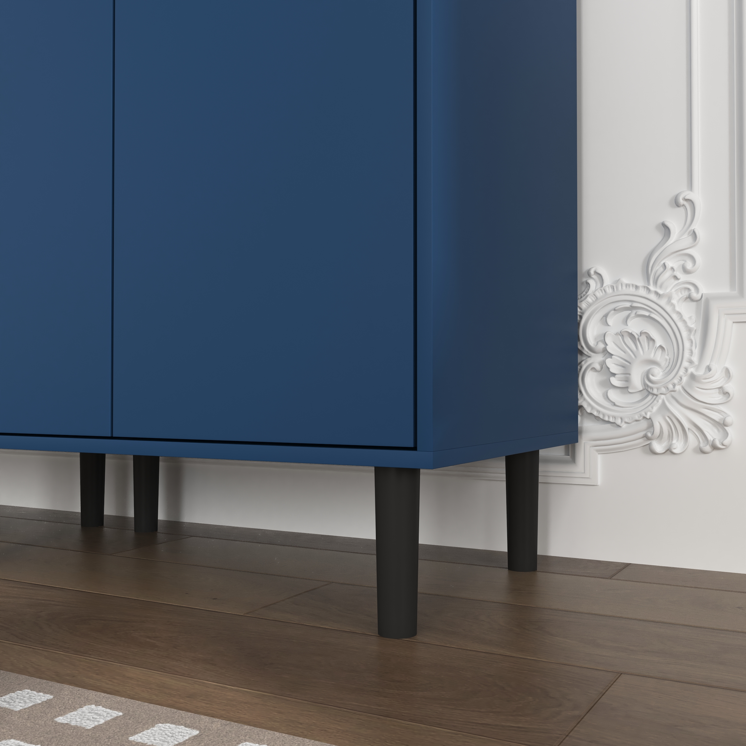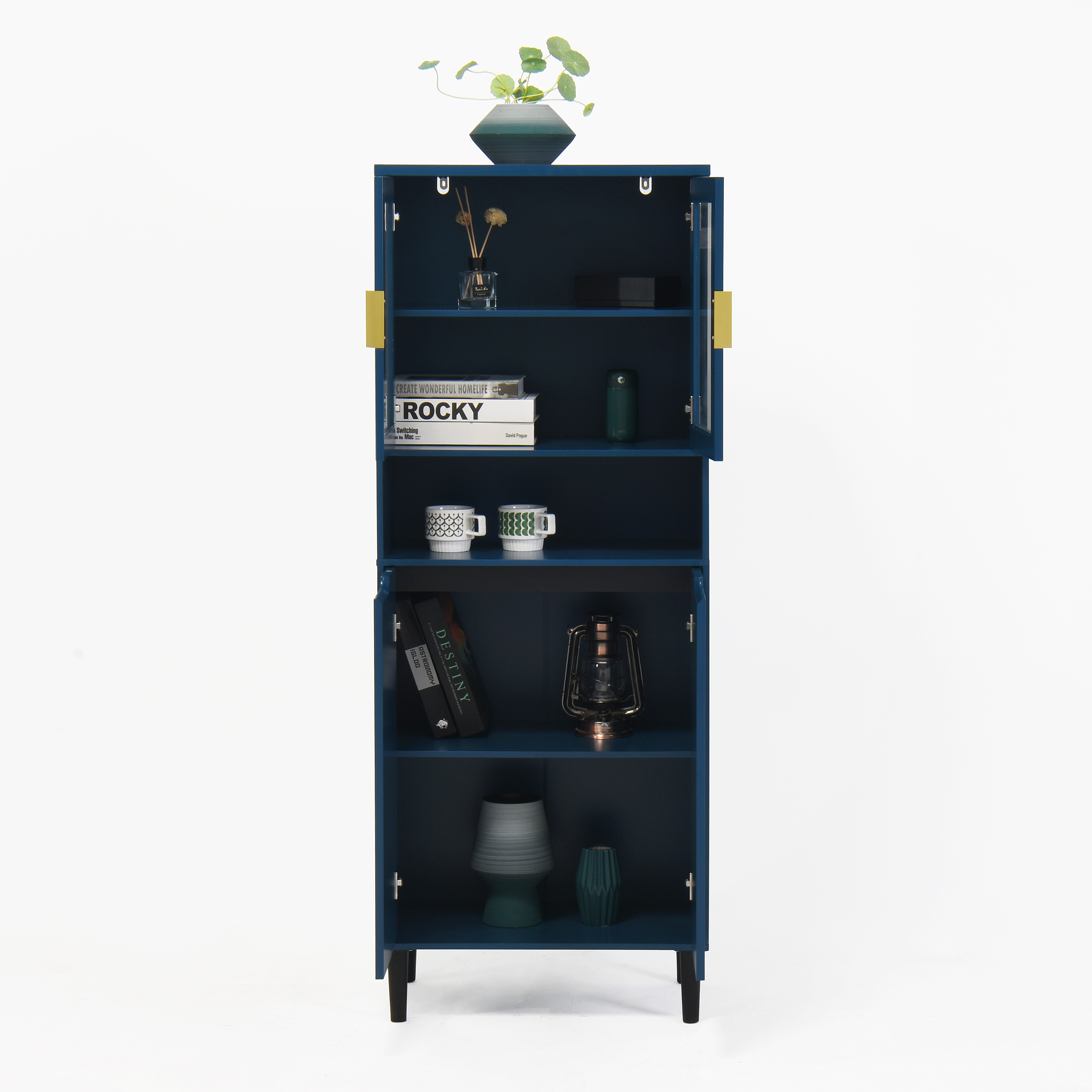 Product Name:Tempered Glass Door Tall Storage Bookcase with adjustable board, 4 doors MDF painting finished cabinet, Navy Blue, Living room Bedroom storage