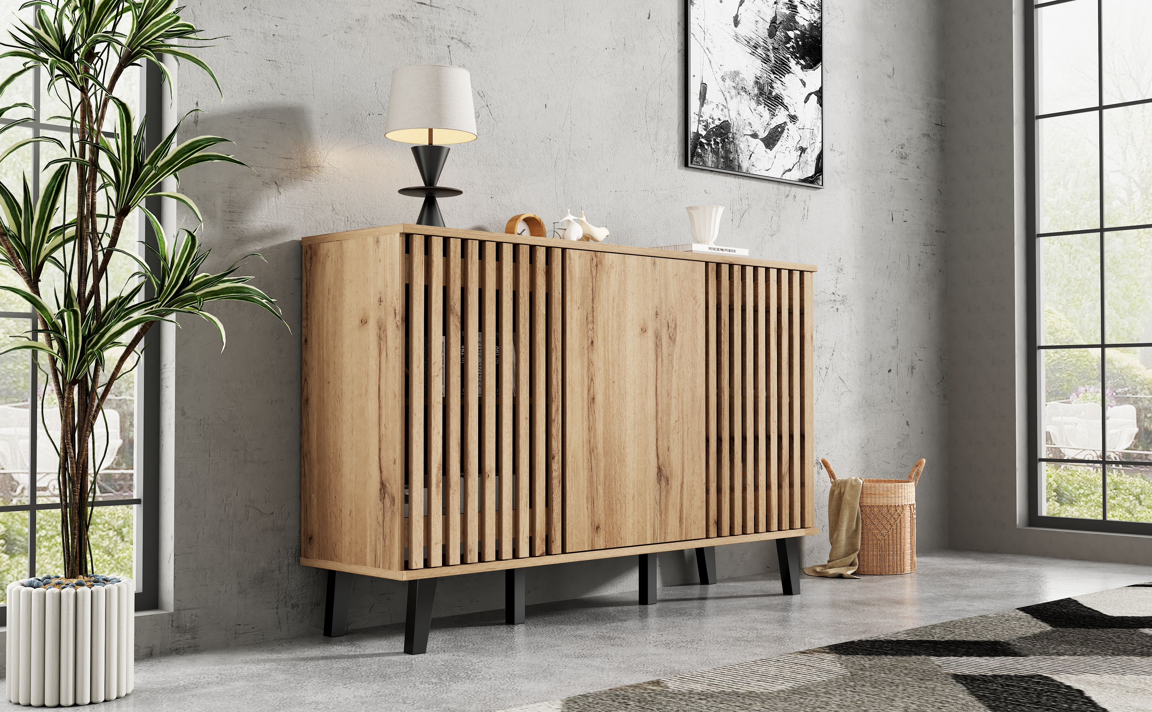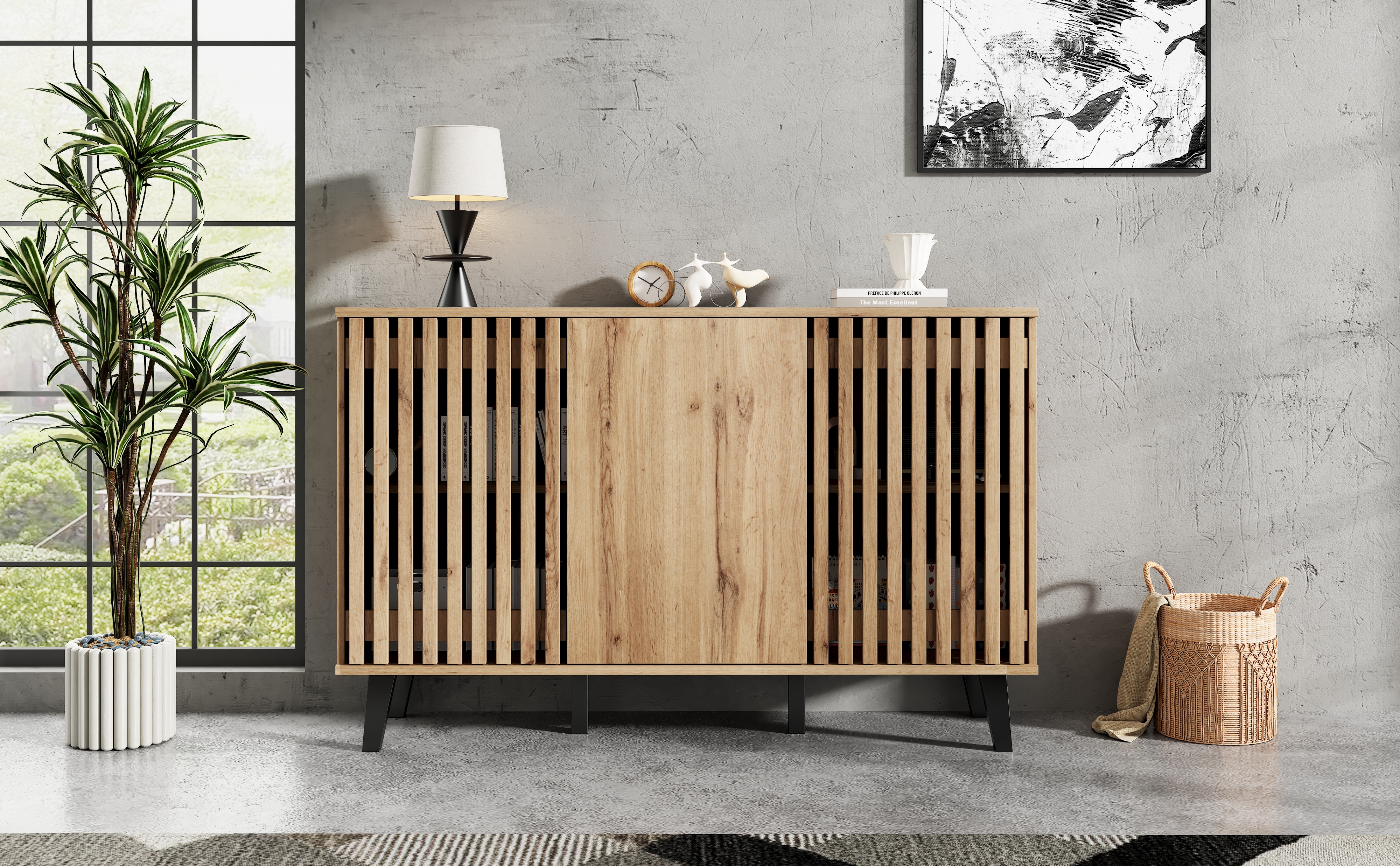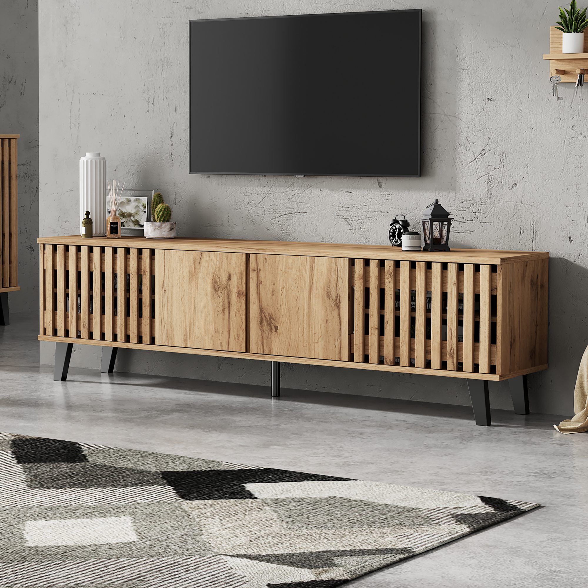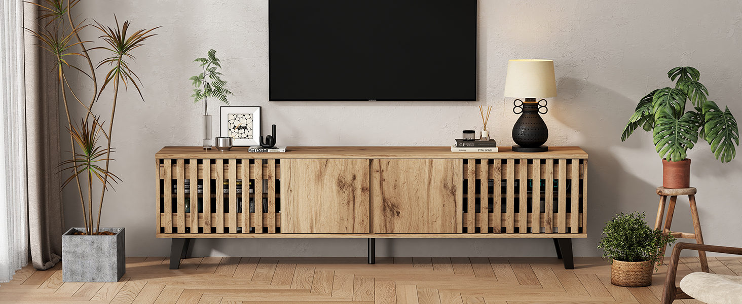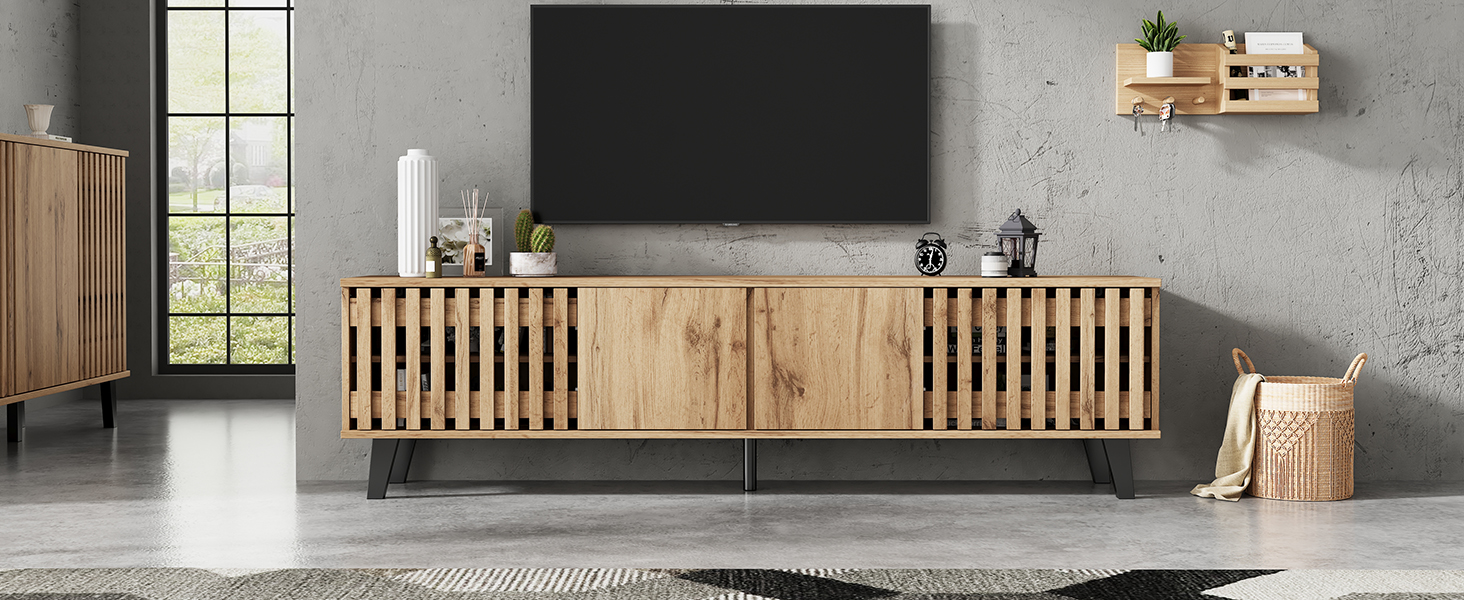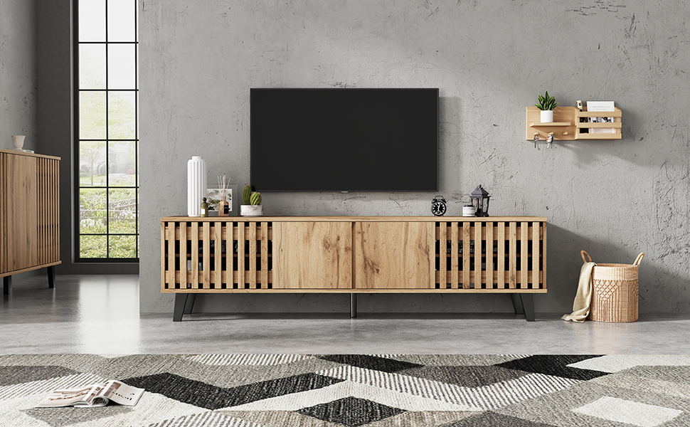 - Unique style: Both the side cabinet and TV cabinet feature industrial-style vertical striped cabinet doors, easy to clean, reflecting a pure and classic British lifestyle.