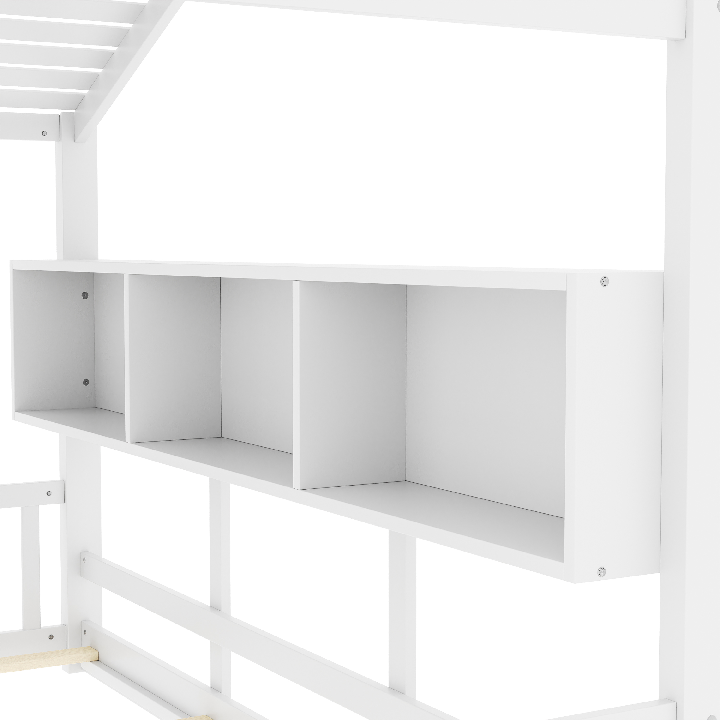 Product Name:Twin Size Floor House Bed for Toddler, Kids Montessori Bed with Storage Shelf, Playhouse Bed with Roof Design, White
