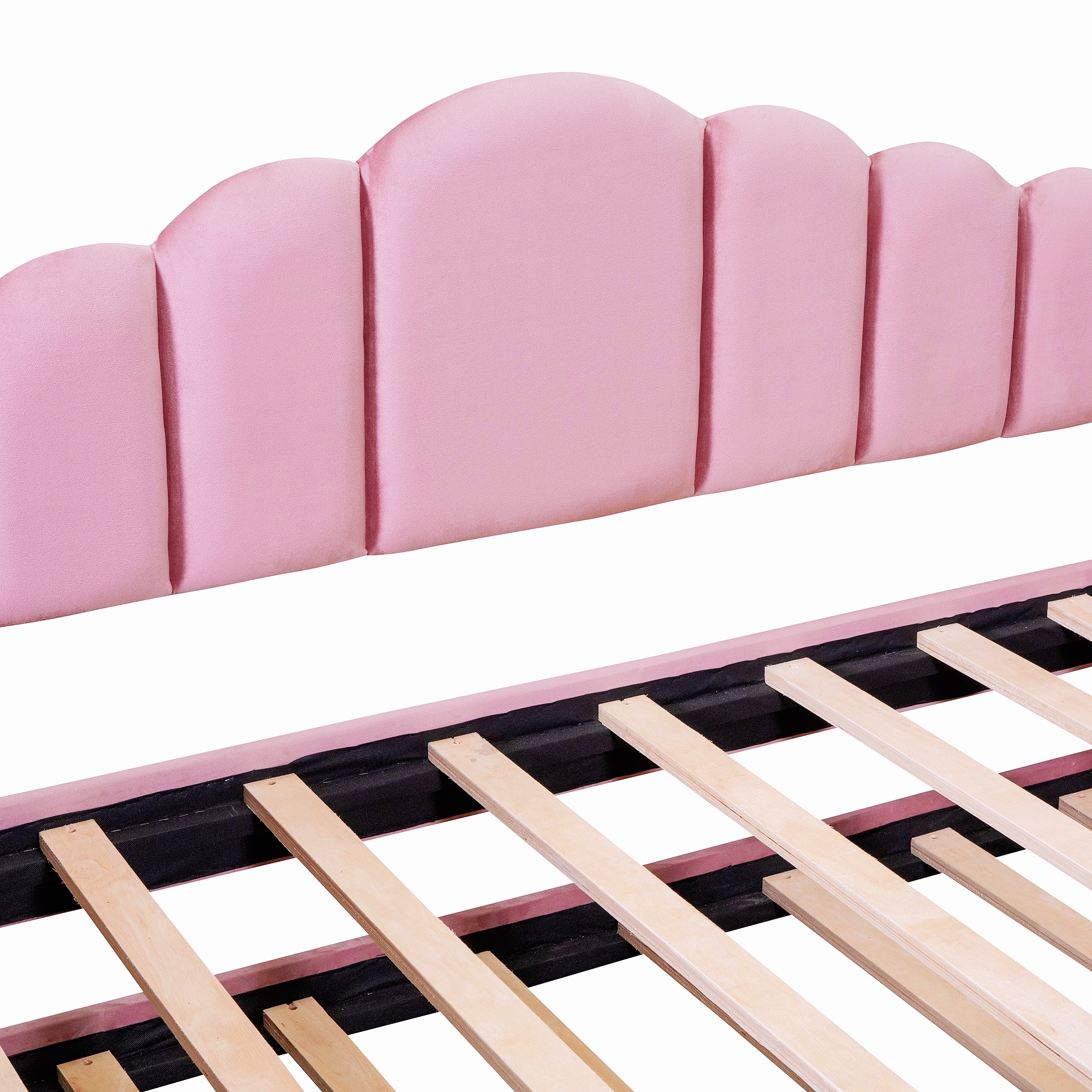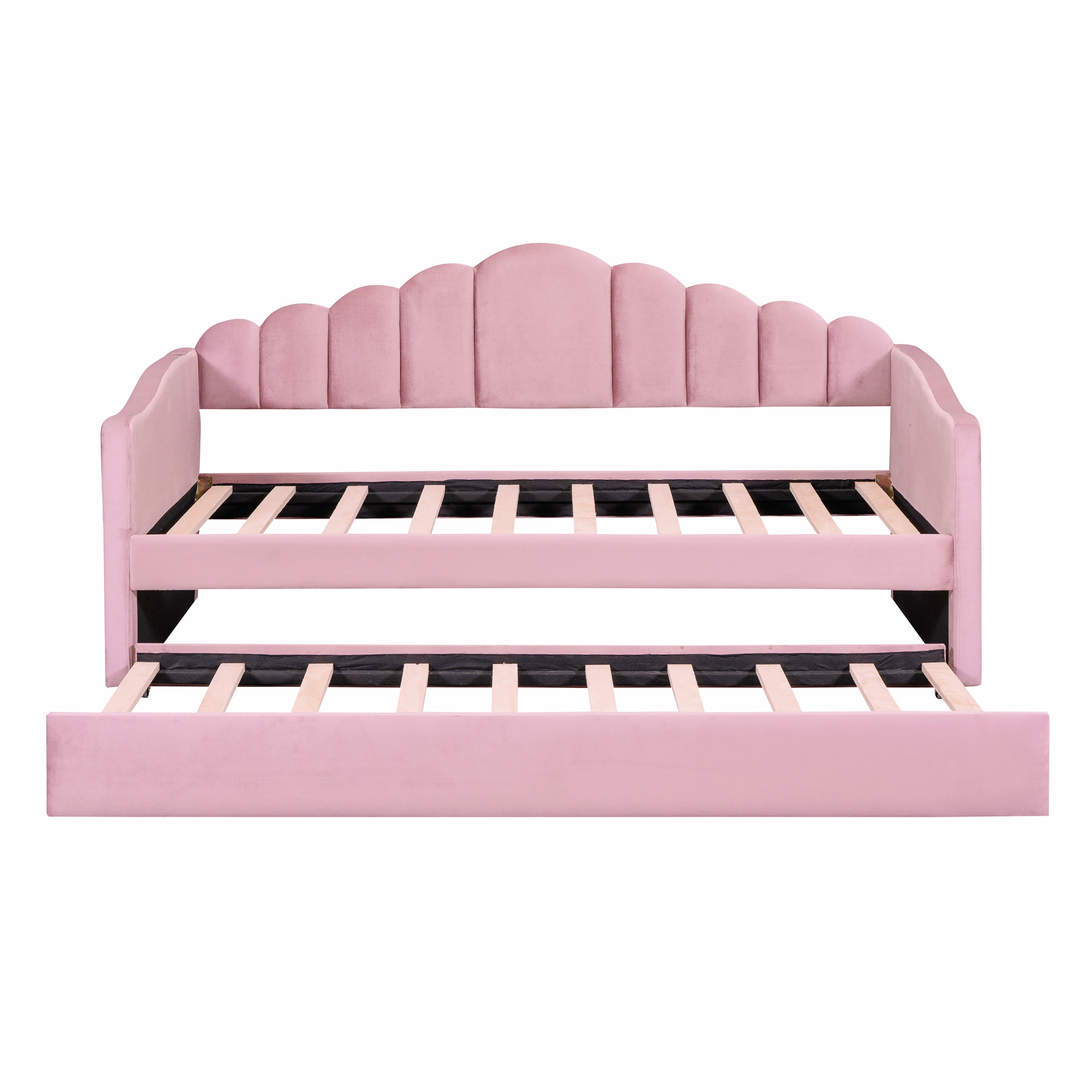 Product Name:Twin size Upholstered Daybed with Trundle ,Velvet Sofabed with USB Charging Ports,No Box-spring Needed,Pink