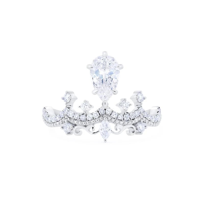 Vintage Crown Design Pear Cut Simulated Moissanite Engagement Ring