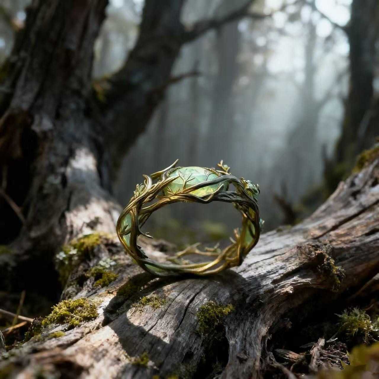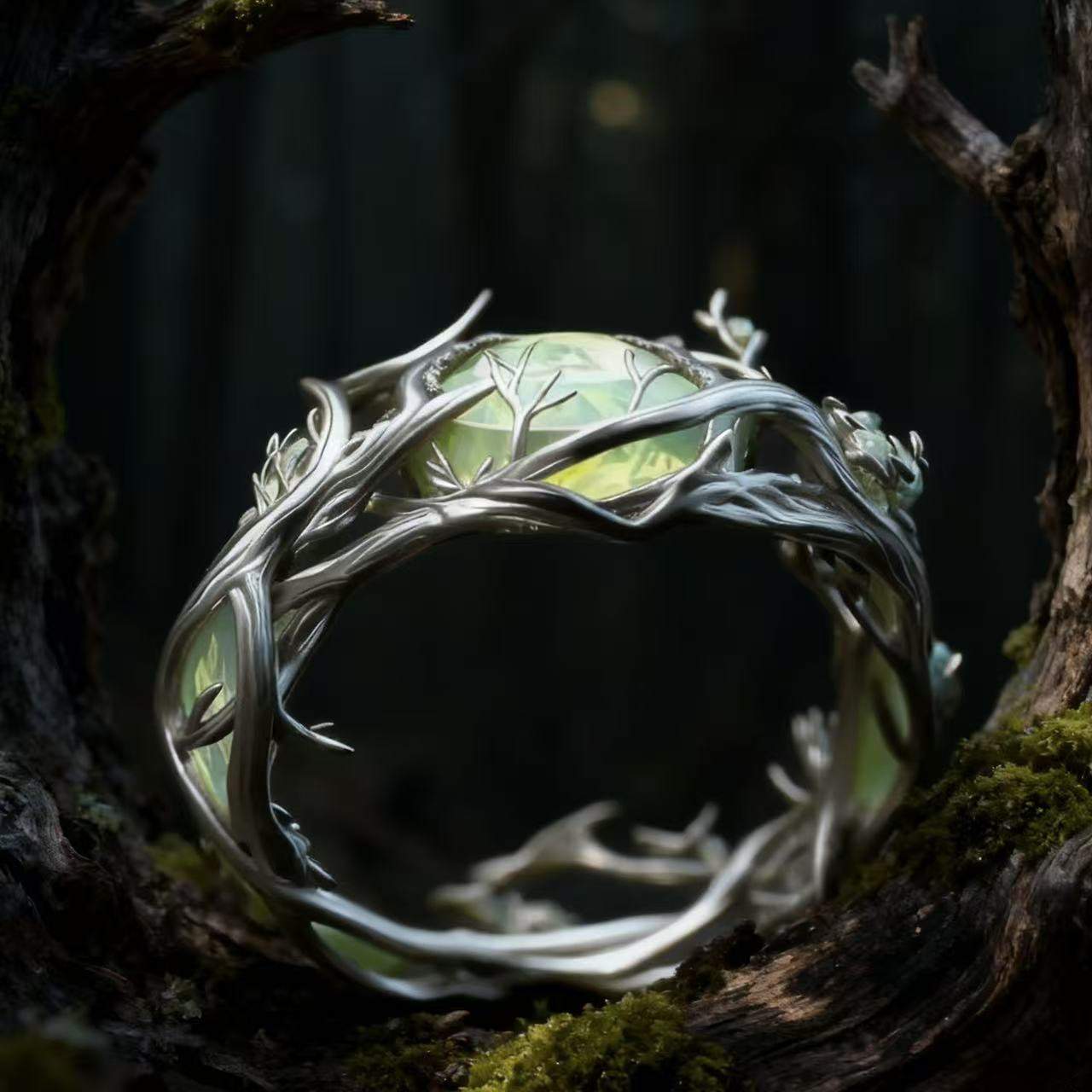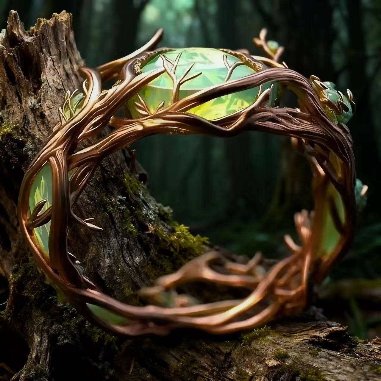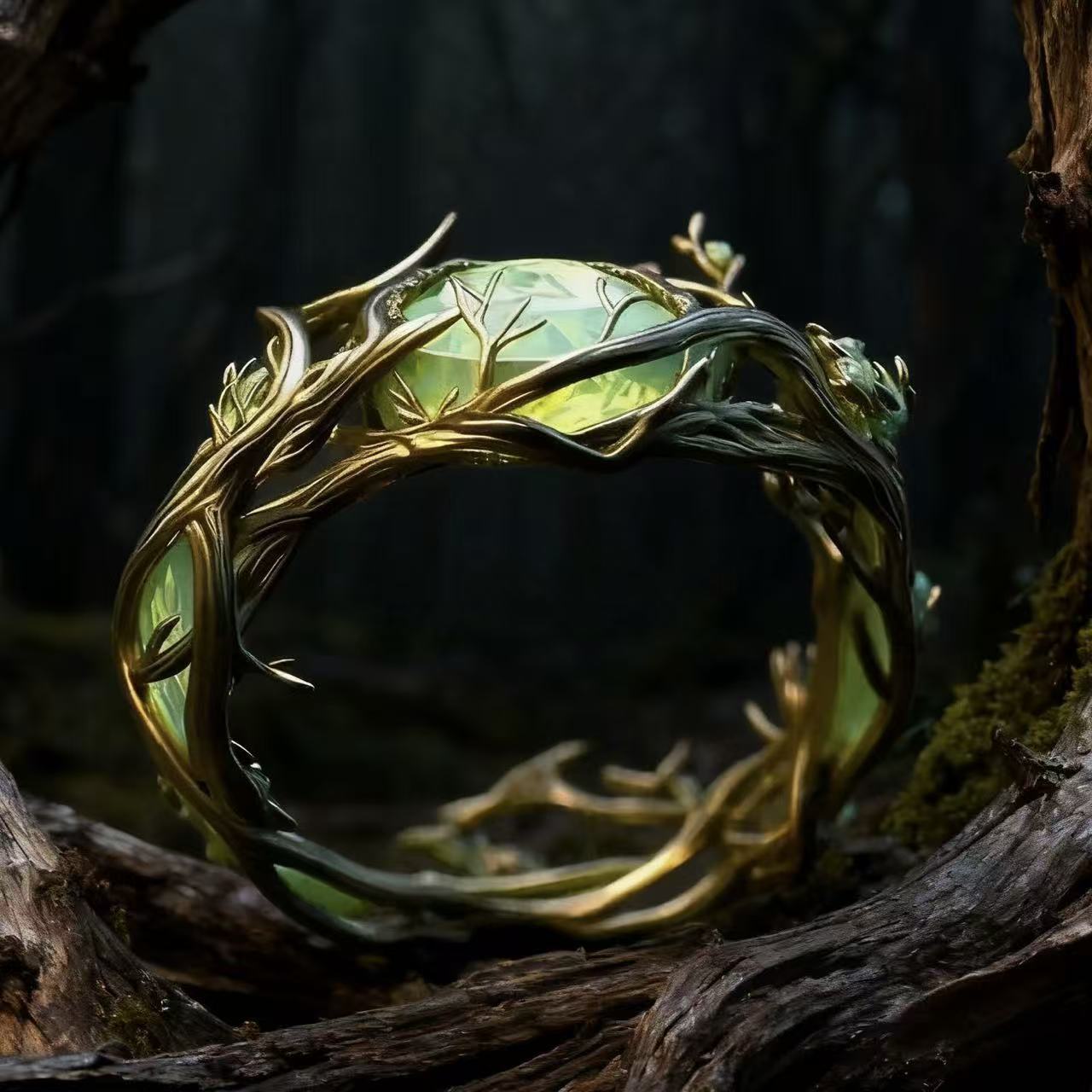 Vintage Personalized Oval Jade Inlaid Malachite Branch & Vine Design Ring For Women