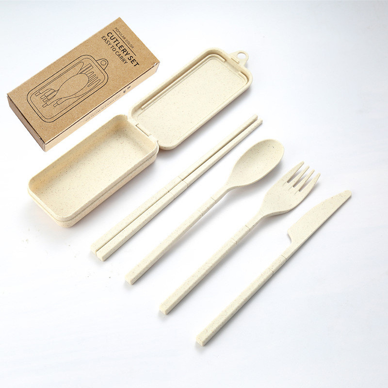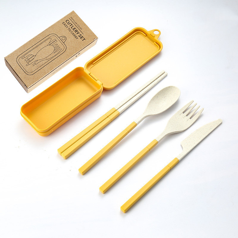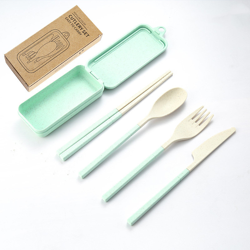 Wheat Straw Folding Tableware Portable Set Detachable Knife, Fork, Spoon And Chopsticks