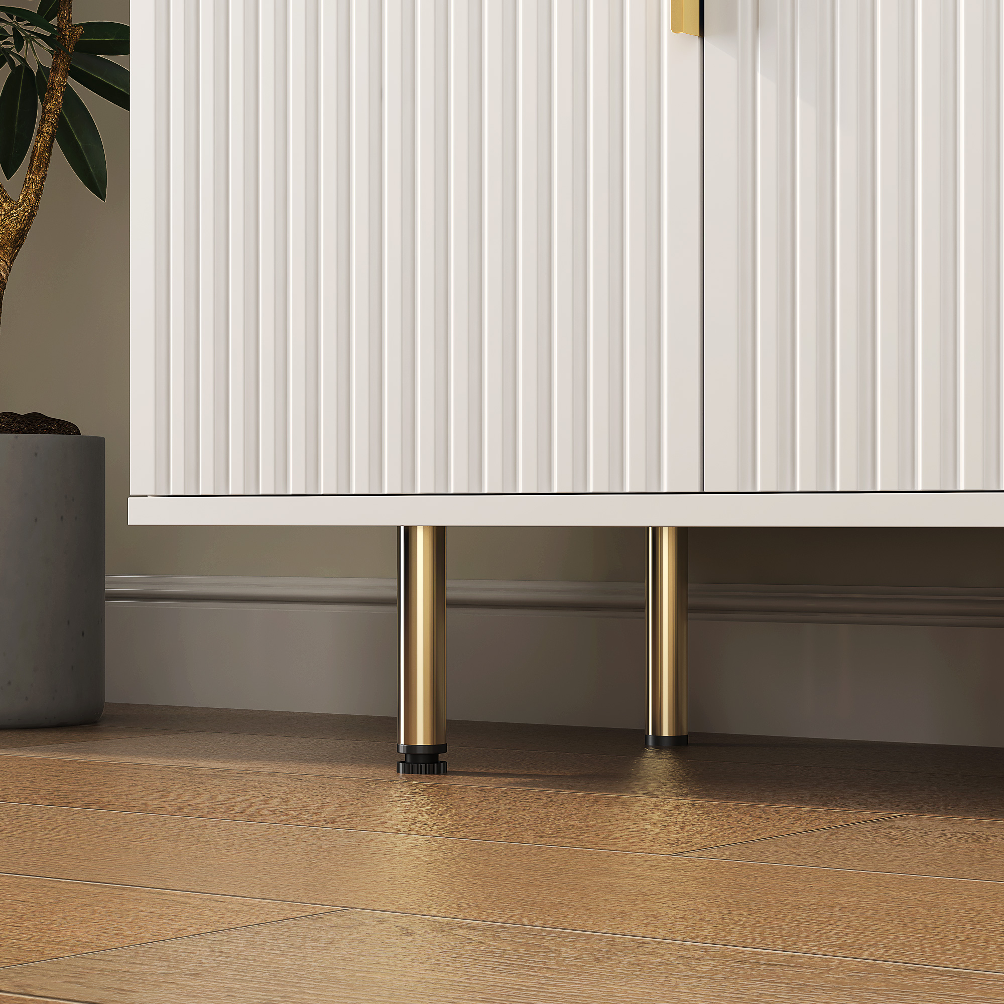 White Modern Buffet Cabinet With Storage, Fluted Sideboard Large Buffet With Adjustable...