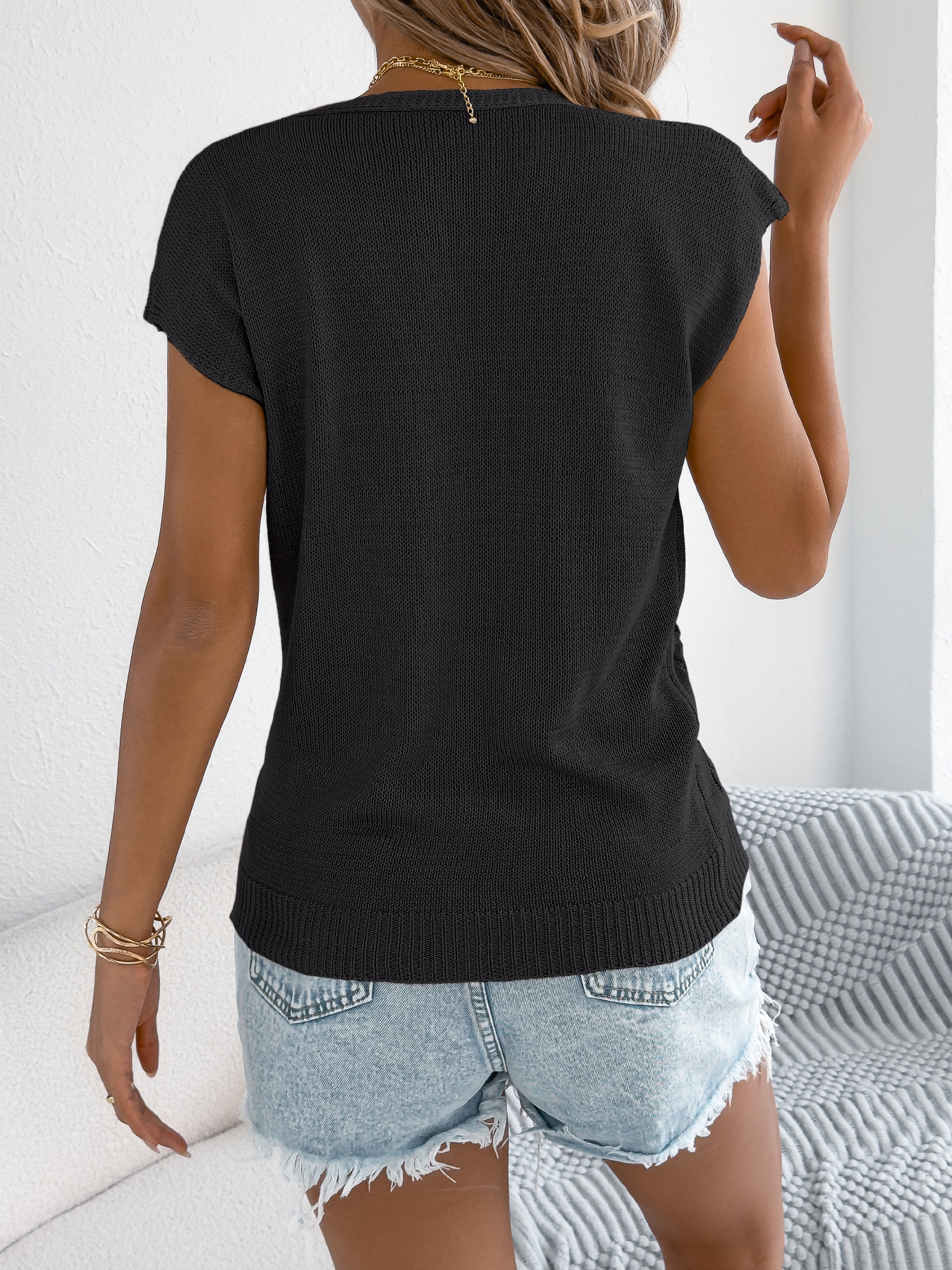 Women S Casual Solid Color Button V Neck Knit Vacation Top