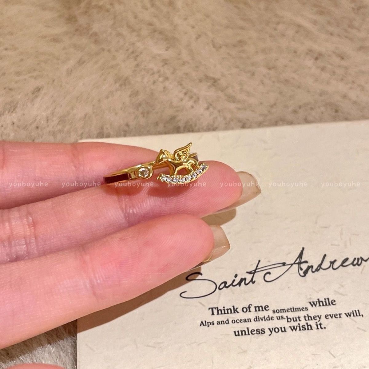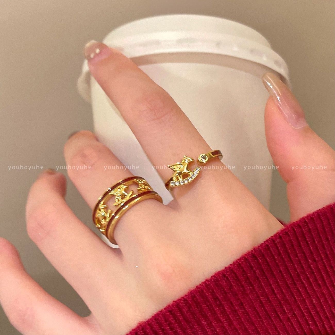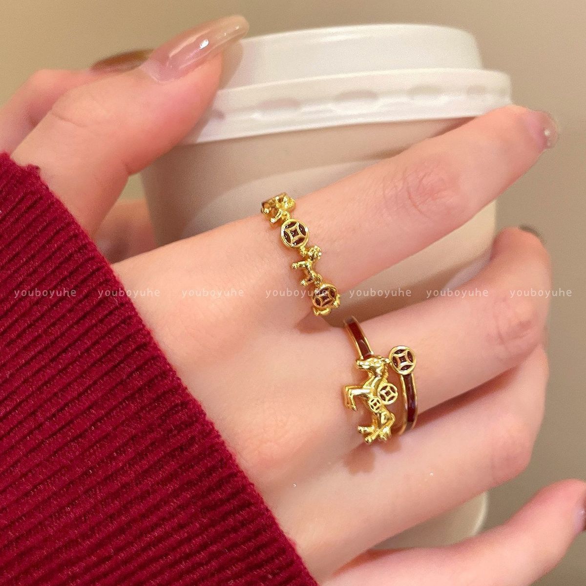 Women's Golden Pony Index Finger Ring, New Year Light Luxury High end Stackable Open Band,...