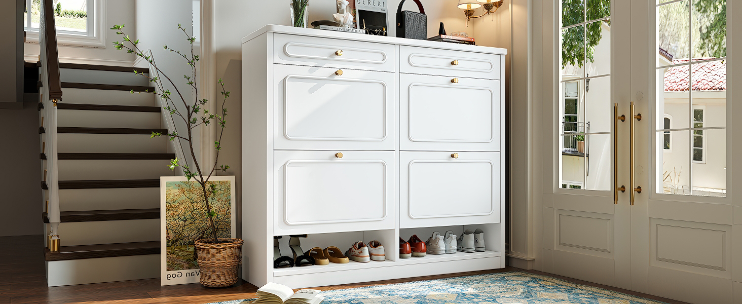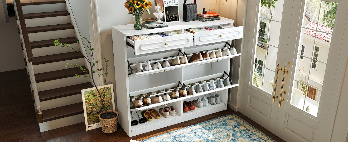 - [Versatile Storage for Entryway & More]:More than just a shoe organizer—use the top drawers for keys, wallets, umbrellas or accessories. Ideal for entryways, foyers, hallways, bedrooms or closets. Assembly instructions and hardware included.