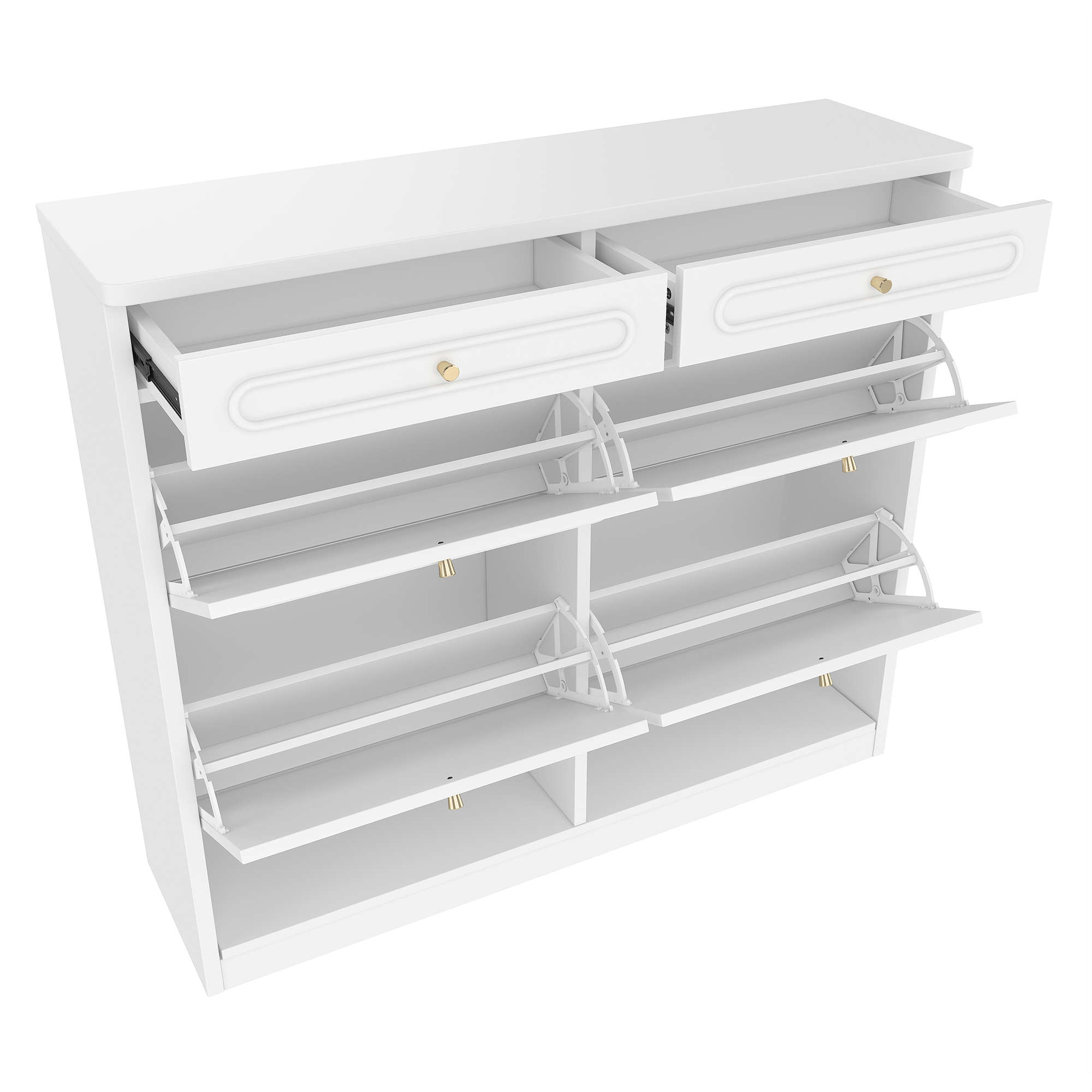 Product Name:Wooden Shoe Cabinet with 4 Flip Drawers,Shoes Rack Cabinet with 2 Storage Drawers,Classified Storage and Farmhouse Style, White